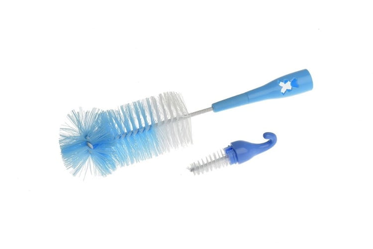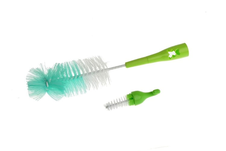 Zestaw specjalnie zaprojektowanych szczotek (duża i mała) do dokładnego mycia butelek i smoczków. Pozwalają na precyzyjne usuwanie zabrudzeń w trudno dostępnych miejscach. Wykonane z bezpiecznych materiałów. Dostępne w czterech wersjach kolorystycznych: zielona, niebieska, różowa i żółta.