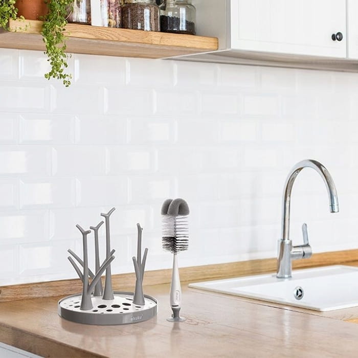 - szczotka zakończona miękką gąbeczką pomaga w dokładnym czyszczeniu zarówno butelek jak i smoczków