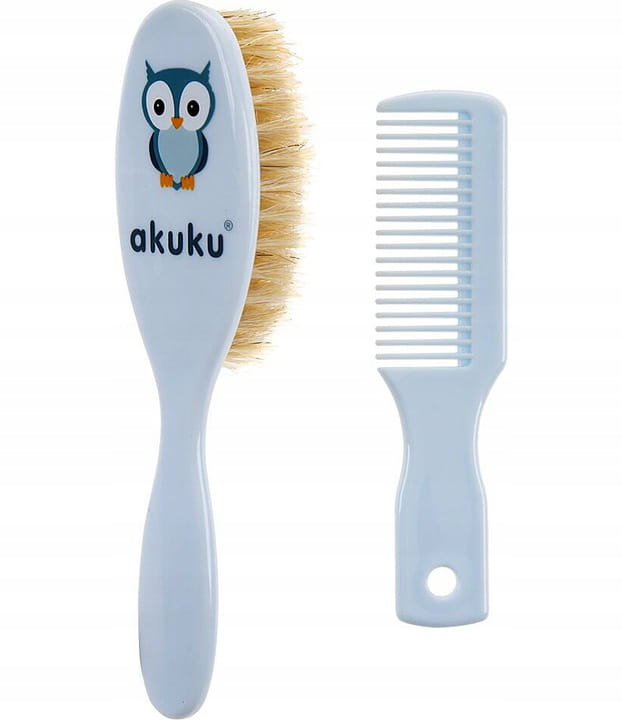 Akuku Zestaw grzebień + szczotka z naturalnego włosia - niebieska