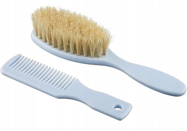 Bezpieczna i delikatna szczotka do czesania dziecięcych włosów wykonana z naturalnego włosia w zestawie z grzebieniem. Miękkie włosie idealnie nadaje się do pielęgnacji delikatnych włosków niemowlaka, a dzięki właściwościom antystatycznym nie elektryzuje ich. Grzebyk natomiast posiada zaokrąglone końce, przez co chroni delikatną skórę dziecka. Dostępna w dwóch kolorach: niebieska i biała.