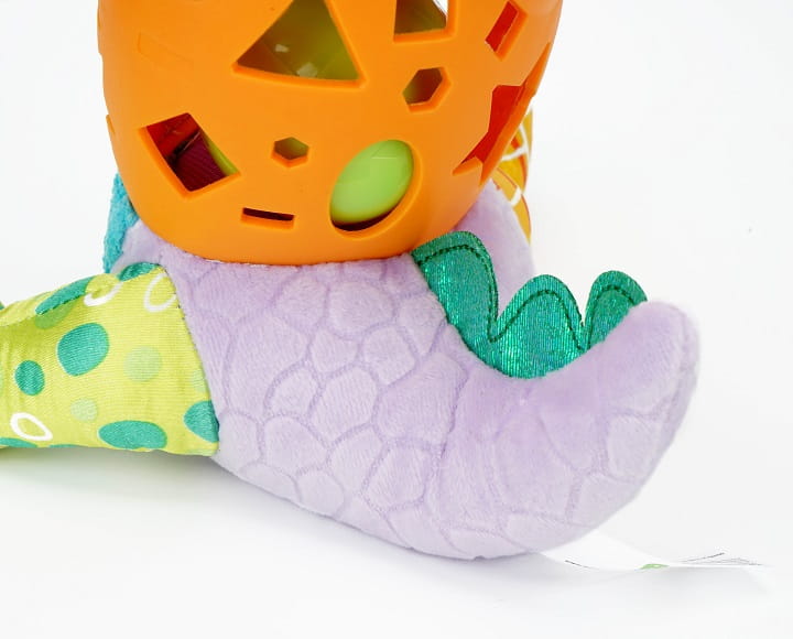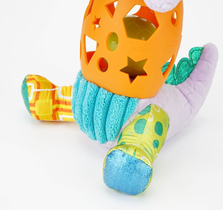 Odkrywanie faktur i kolorów to czysta przyjemność z tym milusim Dinozaurem! Wykonany jest on z materiałów różniących się fakturą, które wspierają rozwój umiejętności poznawczych dziecka. Jego gumowy, elastyczny brzuszek posiada otwory w różnych kształtach, a w jego wnętrzu kryje się grzechocząca kuleczka, dla jeszcze lepszej zabawy.