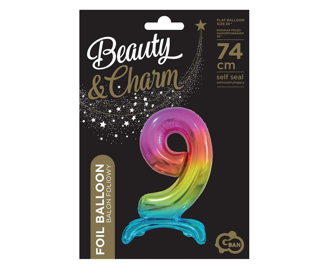Balon foliowy B&C Cyfra stojąca 9, tęczowa, 74 cm BC-AST9