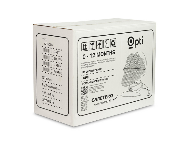 OPTI łączy w sobie funkcjonalność z nowoczesnym, eleganckim designem. Wyposażony w pałąk z zabawkami sensorycznymi, angażuje i rozwija zmysły dziecka. Lekka, a jednocześnie stabilna rama z antypoślizgowymi nóżkami sprawia, że jest to produkt bezpieczny i wygodny w użytkowaniu podczas rodzinnych podróży. Dołączony do zestawu pilot pozwala na wygodne zdalne sterowanie.