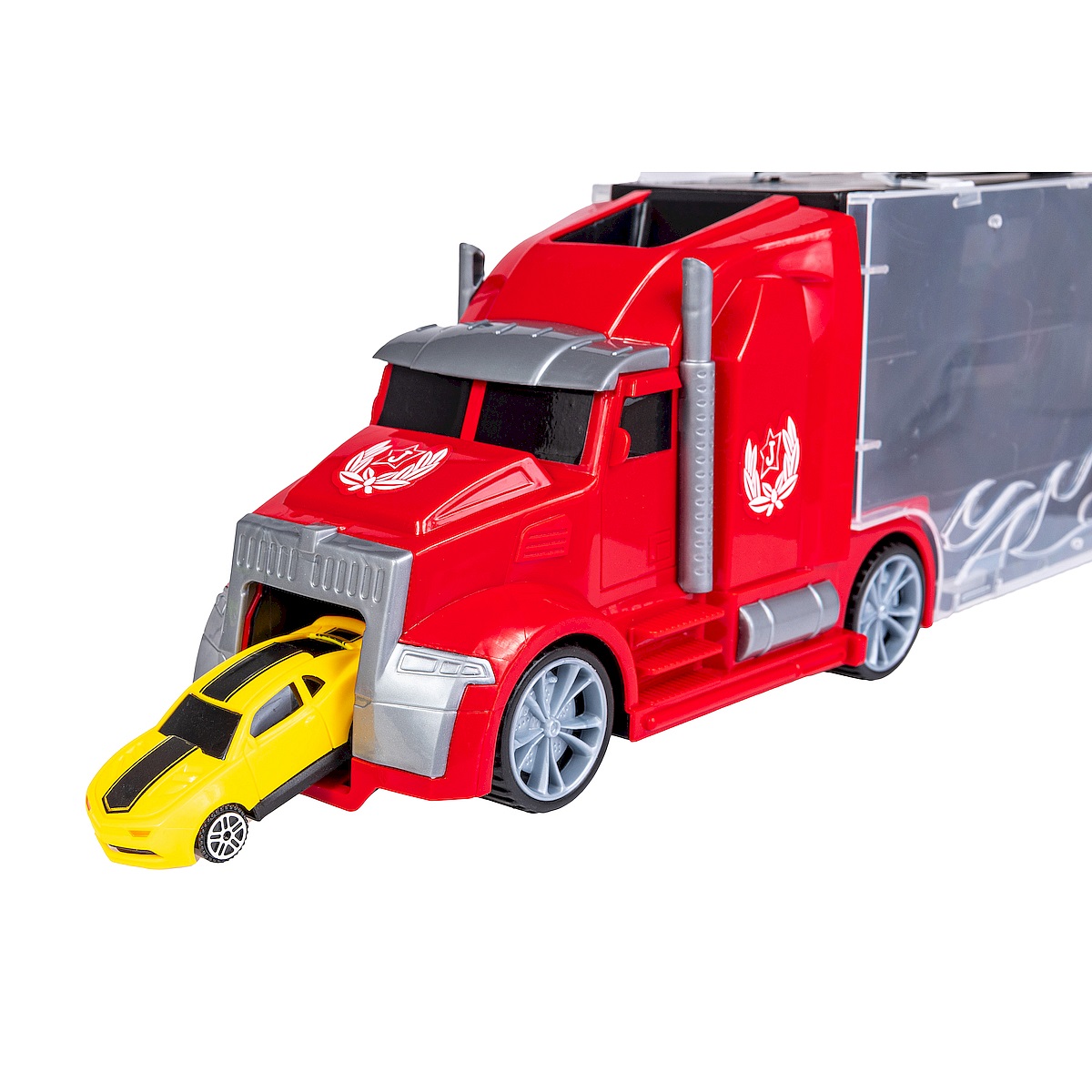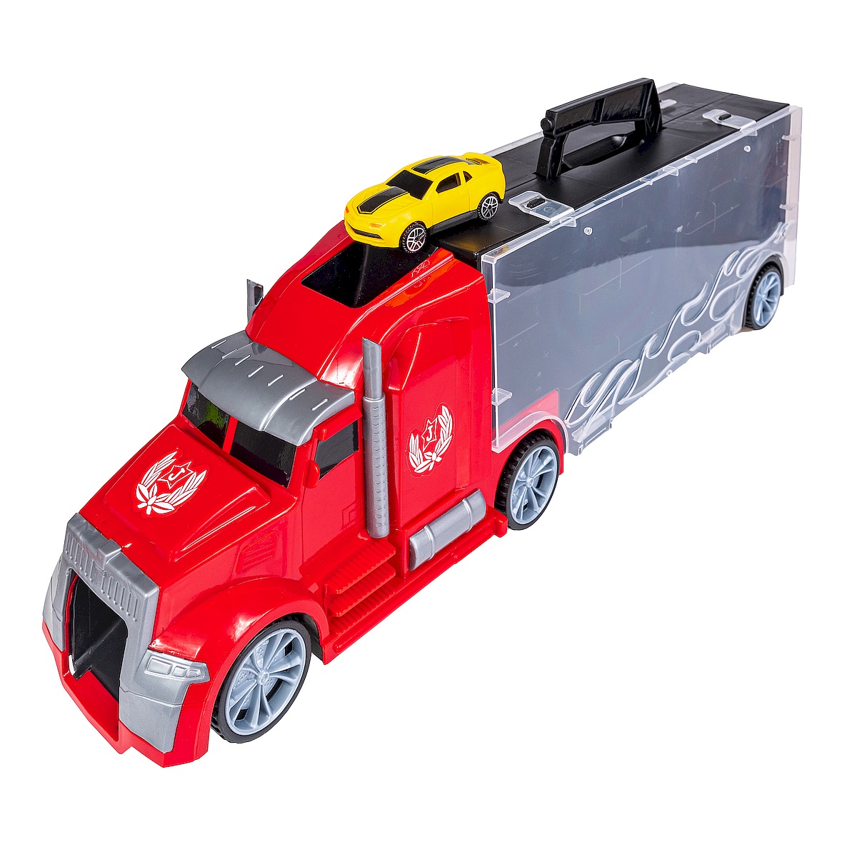 - Każde auto posiada w walizce osobną przegrodę a kabina ciężarówki może służyć jako wygodny wyjazd by ruszyć do zabawy.