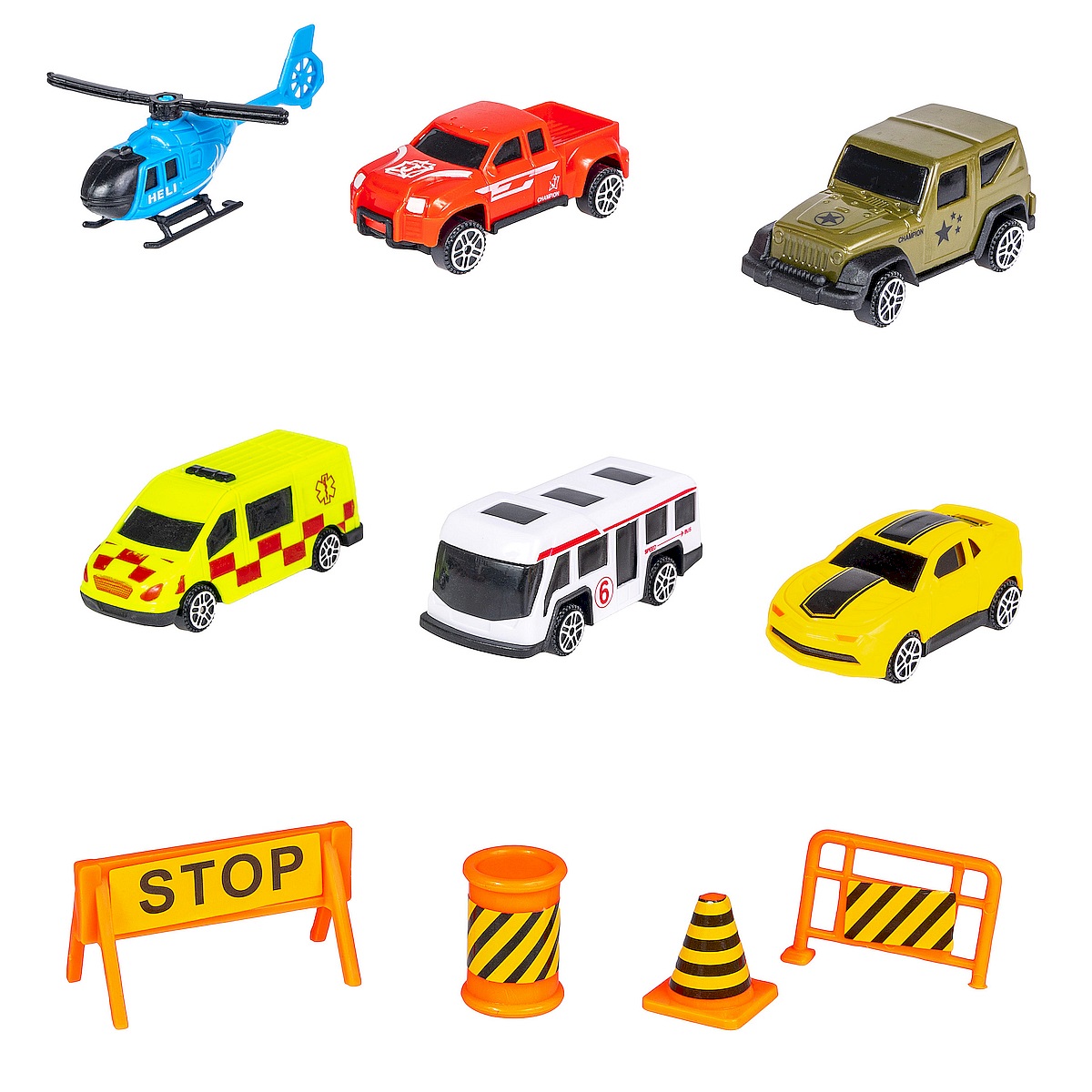- W zestawie 5 aut i helikopter.
