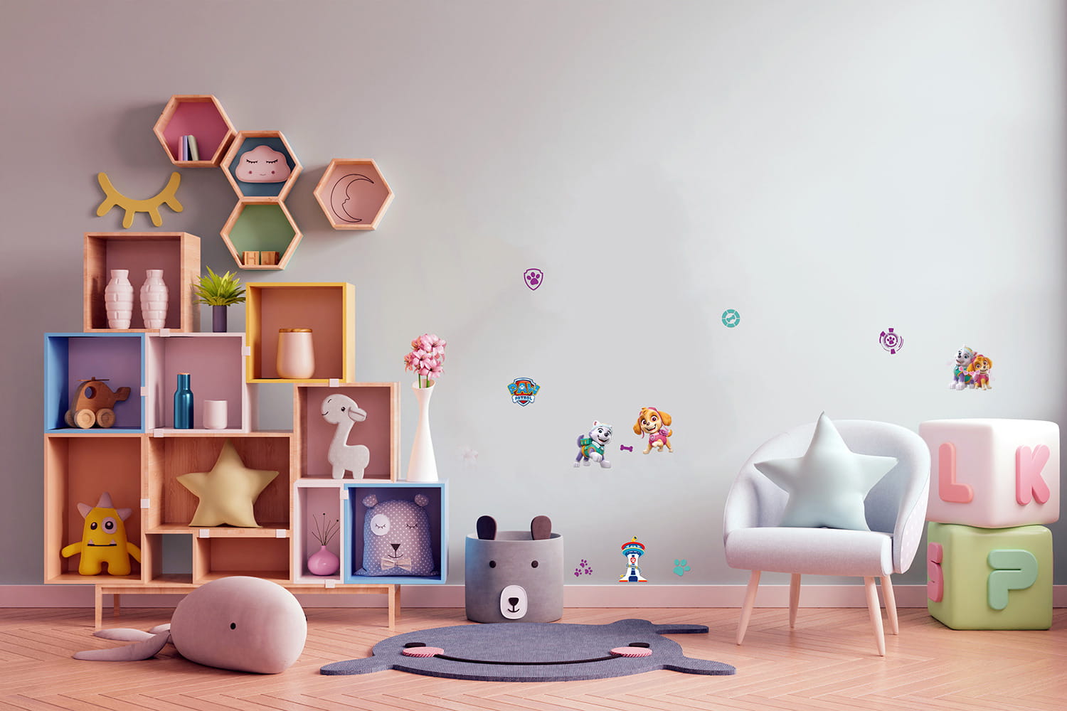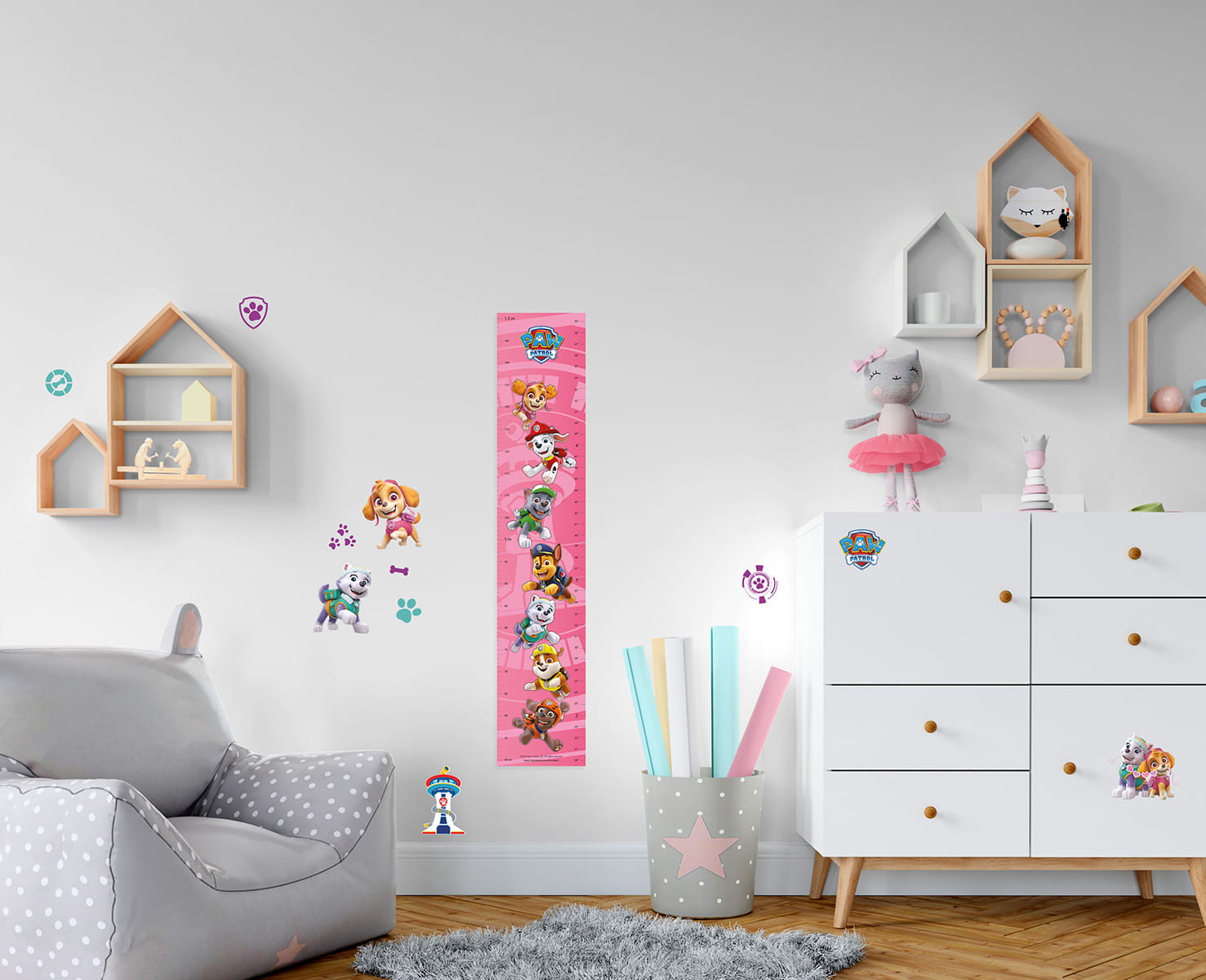 Piękne, kolorowe dekoracje z wizerunkami głównych bohaterów bajki Psi Patrol, dzięki którym pokój dziecka stanie się przytulny i wyjątkowy, a dziecko chętnie będzie spędzało w nim czas.