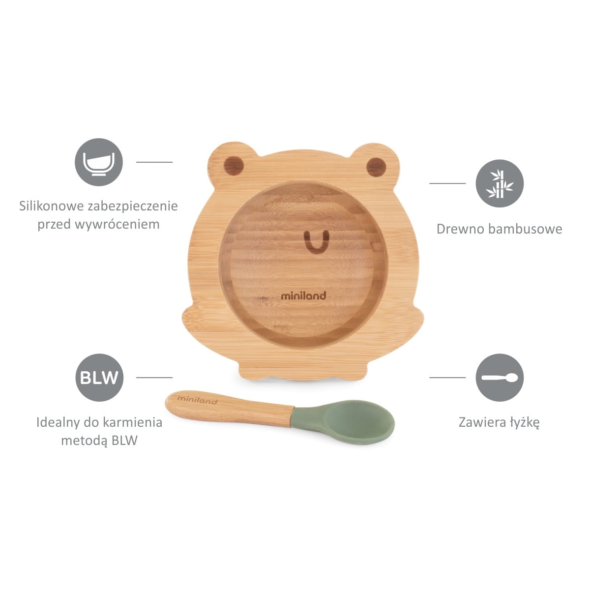 Drewniana miseczka z przyssawką i łyżeczką w zestawie do karmienia metodą BLW ECO-friendly - Żabka