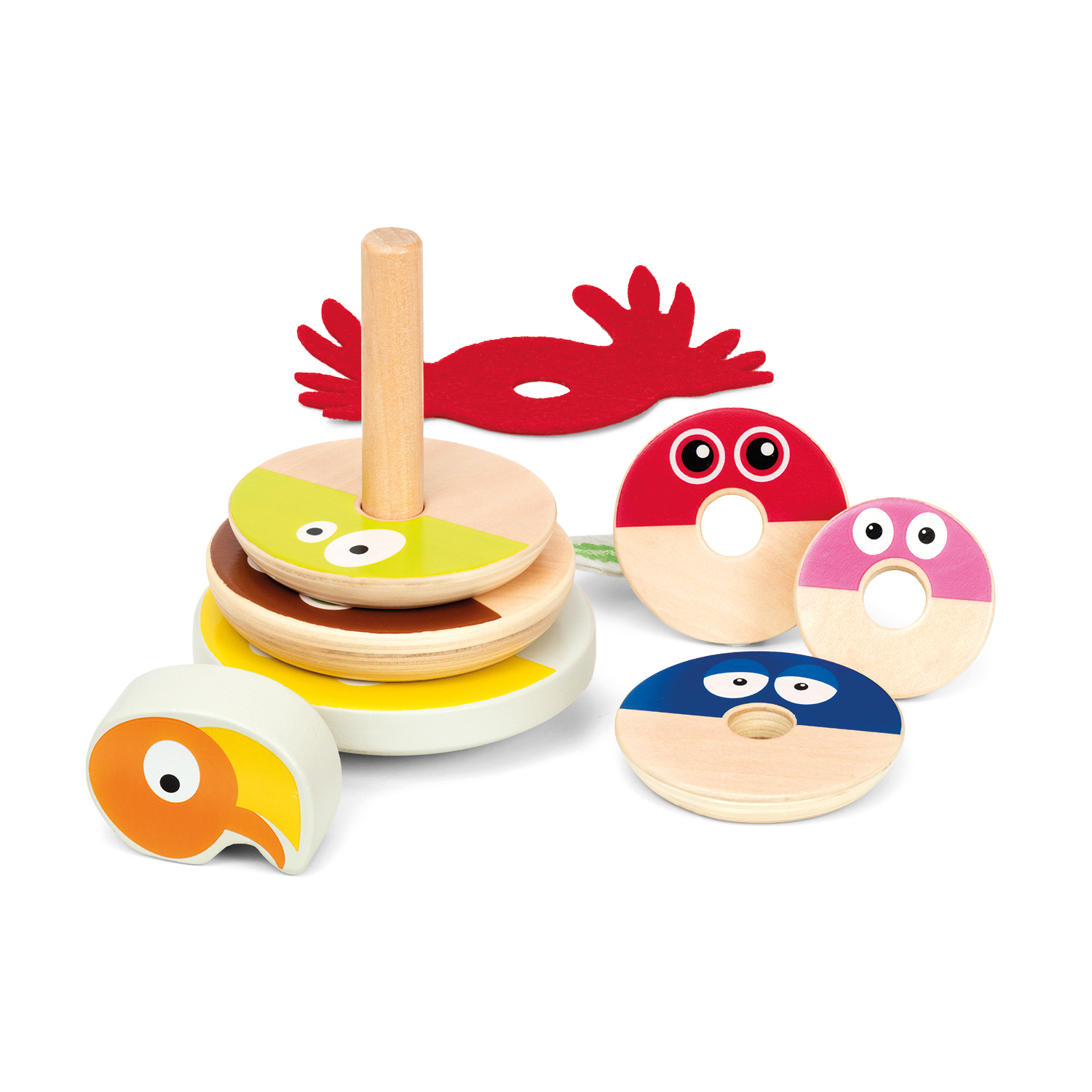 Drewniana układanka papuga, piramida, zabawka, nakładanka, kółka, Babblarna