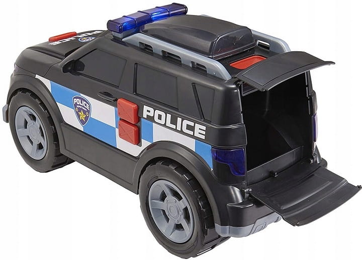 Pojazd doskonale odzwierciedla prawdziwy terenowy wóz policyjny, ma 34 cm długości i utrzymany jest w czarnej kolorystyce. Wóz wydaje sygnał świetlny i dźwiękowy - prawdziwa frajda dla malucha!