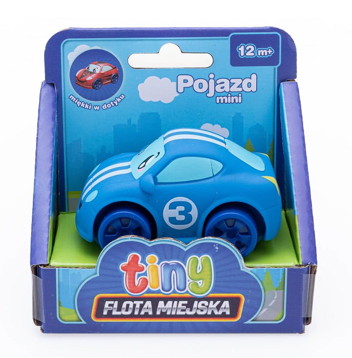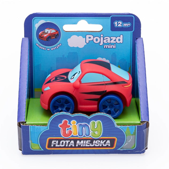 Miękki w dotyku pojazd, który zachwyci maluszka! Posiada opływowy kształt i zaokrąglone krawędzie, dzięki czemu jest bezpieczny dla małych dzieci. Pojazd występuje w 8 różnych wzorach, sprzedawanych oddzielnie. W serii znajdziemy: czerwoną wyścigówkę, niebieską wyścigówkę, wóz strażacki, ambulans, śmieciarkę, ciężarówkę budowlaną, samochód policyjny oraz helikopter. Każdy z pojazdów pasuje do pozostałych zabawek z serii Flota Miejska Tiny: Laweta z autkiem, Zjeżdżalnia z samochodzikiem oraz Garaż Deluxe.