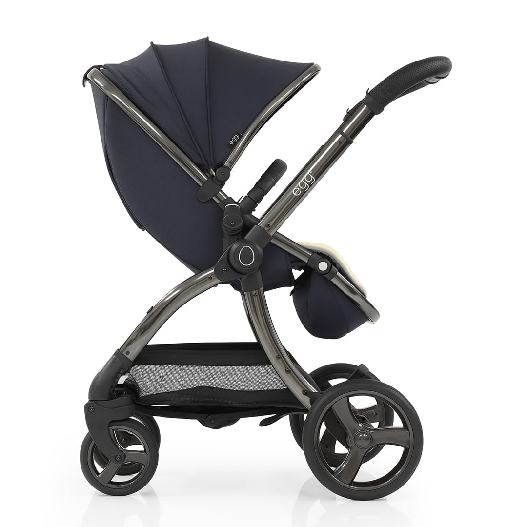 Nowy design stelaża Egg2 posiada regulowaną rączkę o długości 99 – 111cm i został ozdobiony odnowionym emblematem Egg. Składany jedną ręką stelaż Egg2 jest kompaktowy i wolnostojący po złożeniu, a jego rączka nigdy nie opiera się o ziemię.