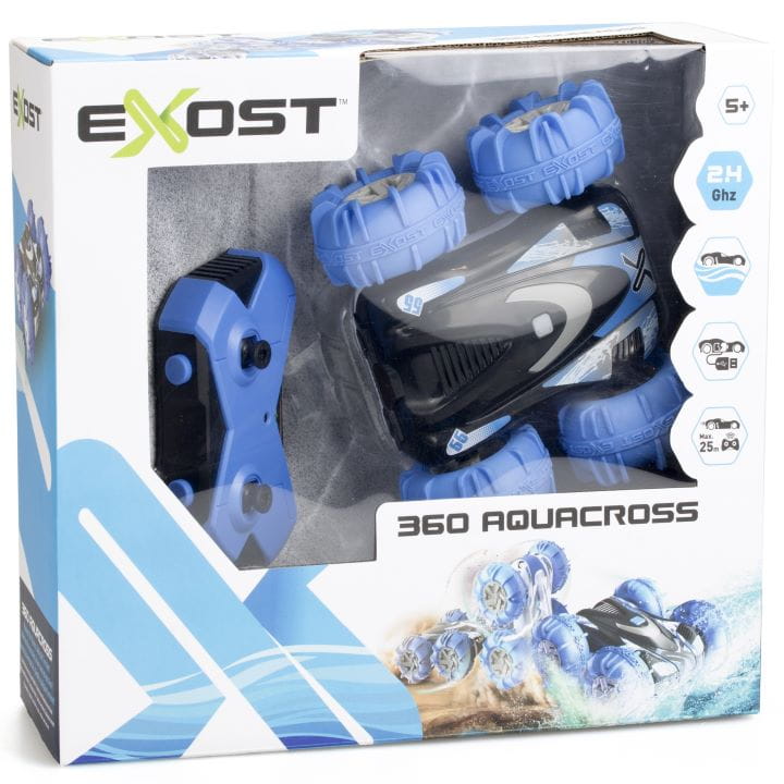 EXOST Zdalnie sterowany samochód terenowy, 360 Aquacross 2.4Ghz, Akumulator, Jeździ po ziemi i pływa w wodzie, Zabawka dla dzieci, Od 5 lat