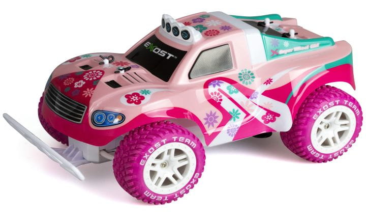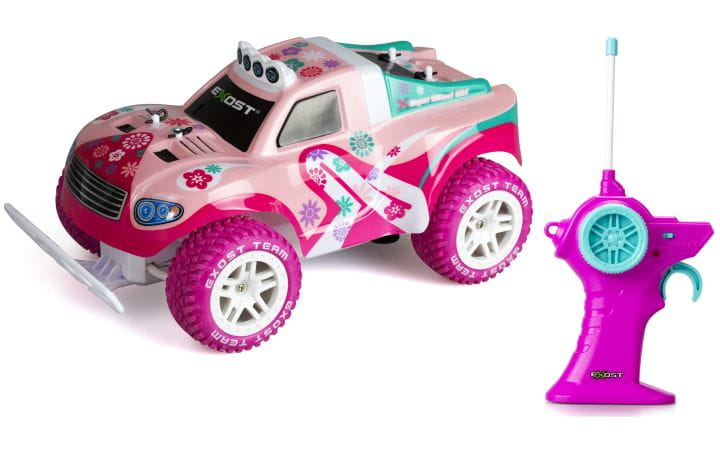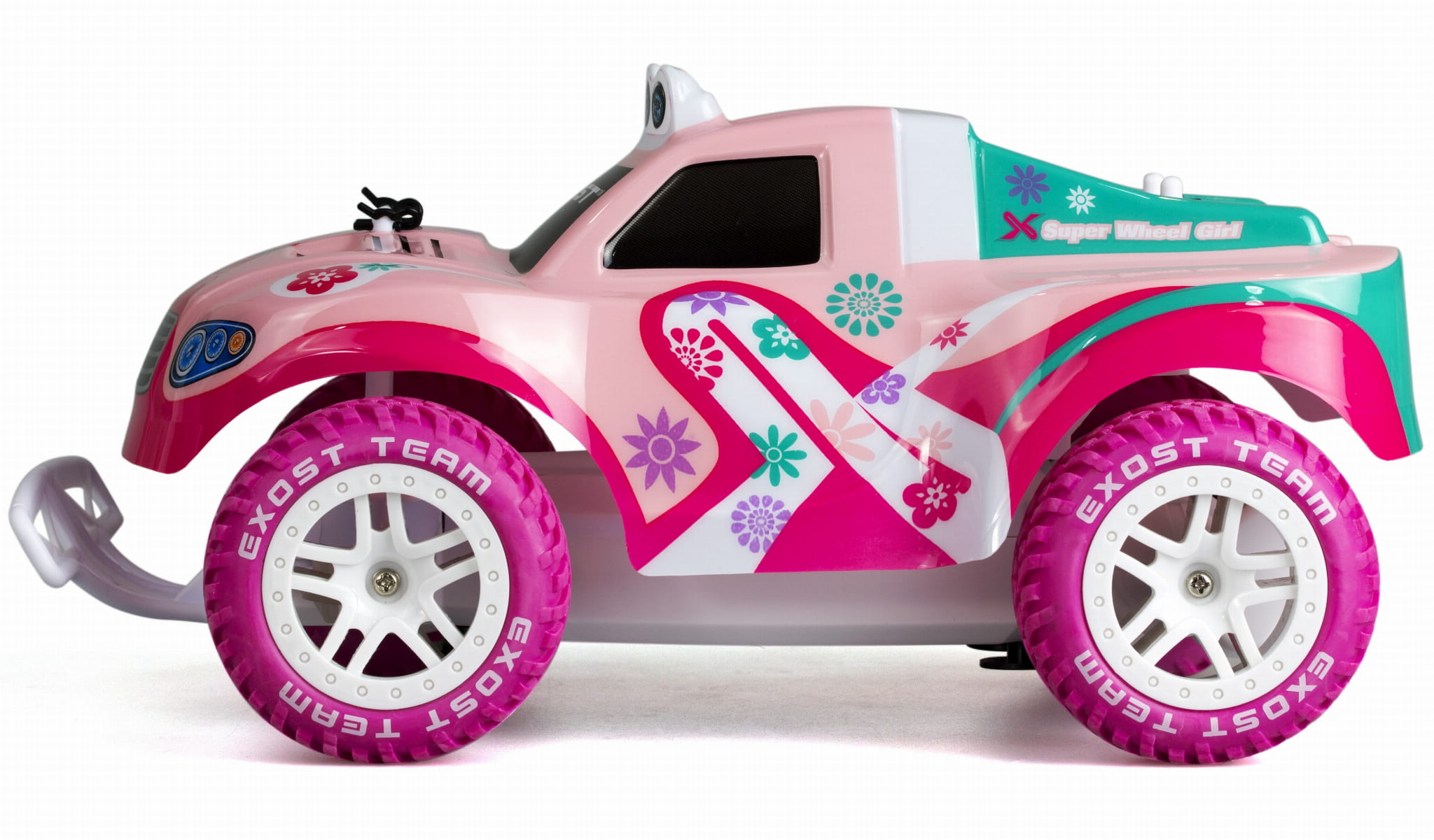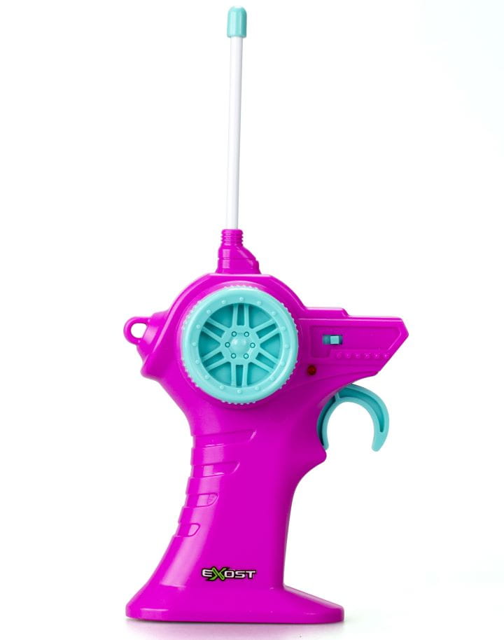 Stylowy samochód w pięknych, pastelowych kolorach zachwyca nie tylko wyglądem, ale też bogactwem funkcji! Pojazd posiada zdejmowaną karoserię, a przy jego masce znajduje się specjalny, elastyczny amortyzator, chroniący samochód przed zderzeniem z przeszkodą. Autko zasilane jest bateryjnie, potrafi jeździć po różnych nawierzchniach i to we wszystkich kierunkach. W zestawie znajduje się zdalnie sterowany pojazd i pilot.