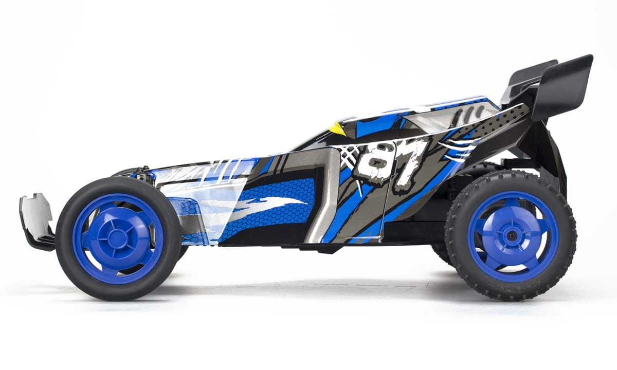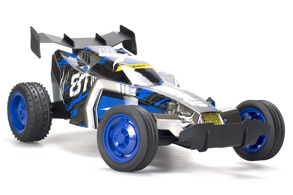 Odjazdowa bryka, odwzorowana w skali 1:10, dostarczy zupełnie nowych wrażeń z zabawy zdalnym sterowaniem! Pojazd wyposażony został w nowoczesną, stylową karoserię i wytrzymałe opony, którymi auto potrafi jeździć we wszystkich kierunkach. Auto posiada akumulator do ładowania, a dołączony do zestawu pilot zasilany jest bateriami typu AA (niezawarte w zestawie).