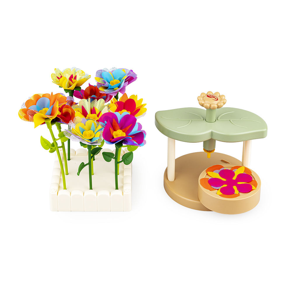 Projektuj kwiatki, łącząc ze sobą barwne płatki i komponuj z nich bajecznie kolorowe bukiety! Z tym kreatywnym zestaw stworzysz zabawkowe roślinki, które będą wspaniałą ozdobą pokoju, a także uroczym prezentem dla bliskiej osoby. W zestawie znajduje się maszynka do łączenia elementów w główkę kwiatka, kolorowe płatki, szypułki, środki oraz łodygi w dwóch długościach. Dodatkowo, opakowanie zawiera także akcesoria do wyeksponowania gotowych kwiatków i stworzonych z nich bukietów.