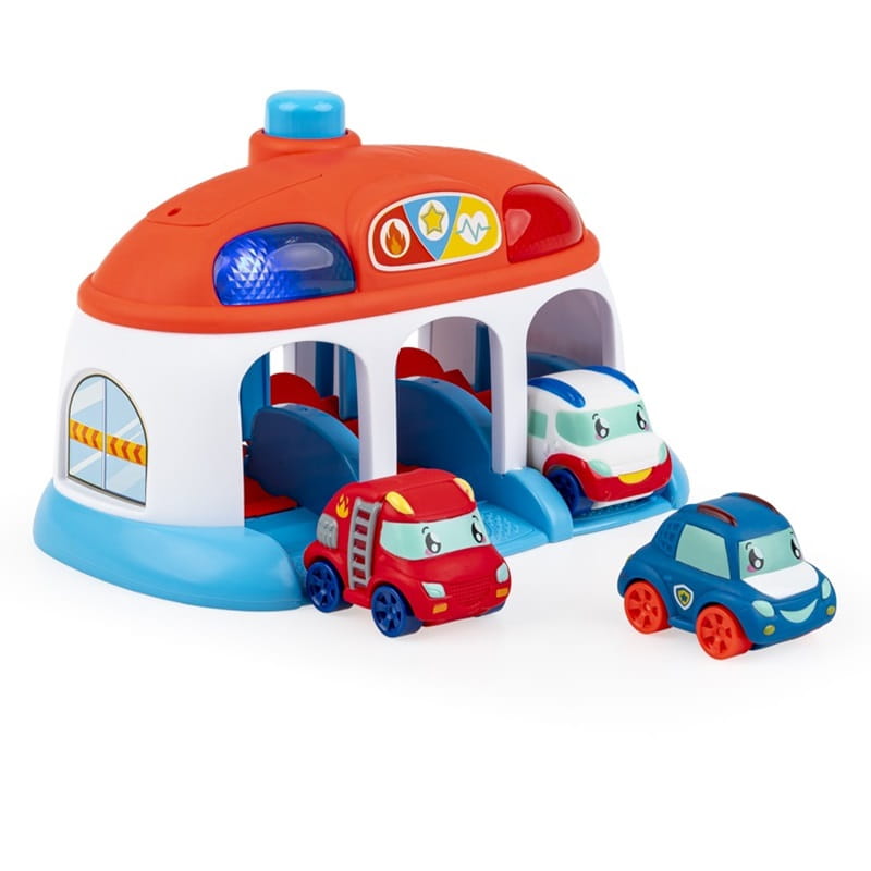 Garaż dla 3 miękkich samochodzików w garażu ze światłami i syreną