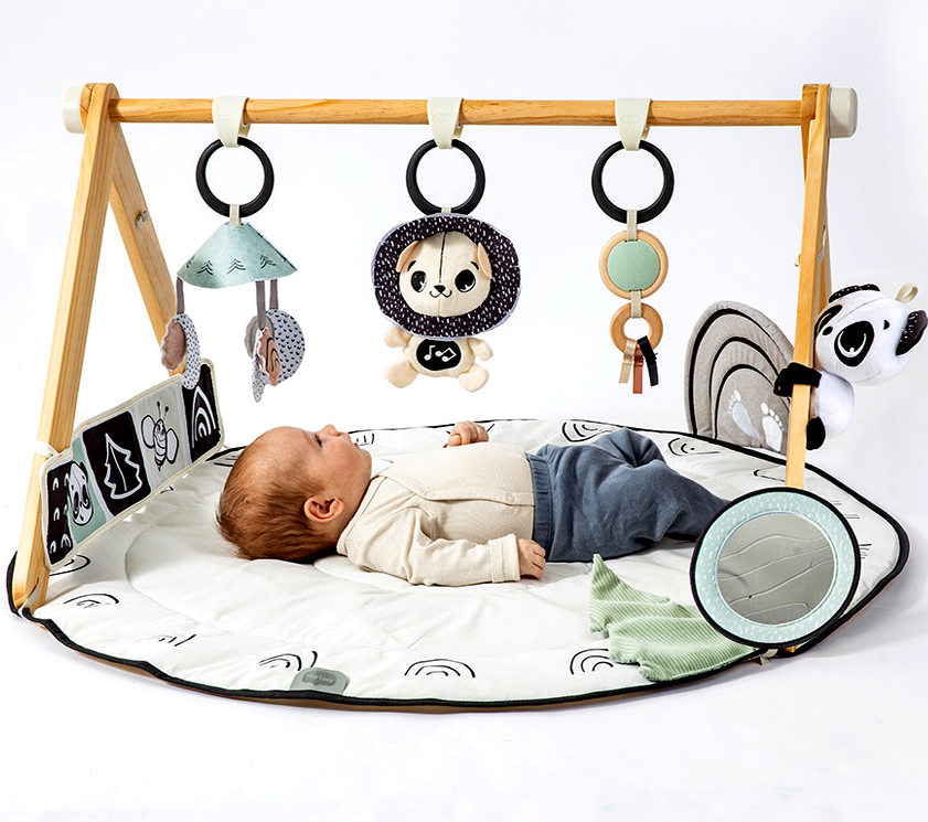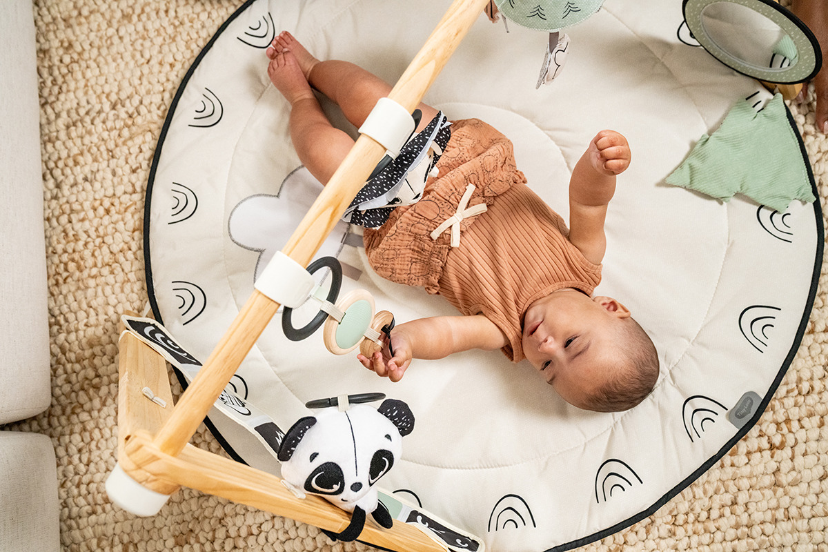 Kolory, tekstury i dźwięki pobudzą zmysły dziecka już od pierwszych dni. Wspaniała kolekcja zabawek zachęci Twoje dziecko do spędzania więcej czasu leżenia brzuszku. Leżąc na plecach dziecko może ćwiczyć koordynację ręka-oko, próbując dosięgnąć pierścieni.