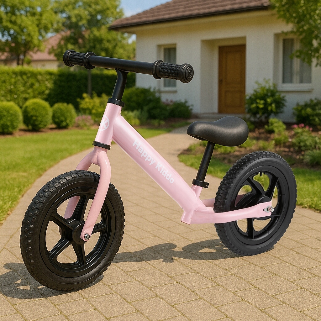 Antypoślizgowe gumowe uchwyty zapewniają pewny chwyt i zwiększają bezpieczeństwo. Kierownica jest stabilna i łatwa w prowadzeniu, wspomagając naukę jazdy i utrzymywania równowagi.