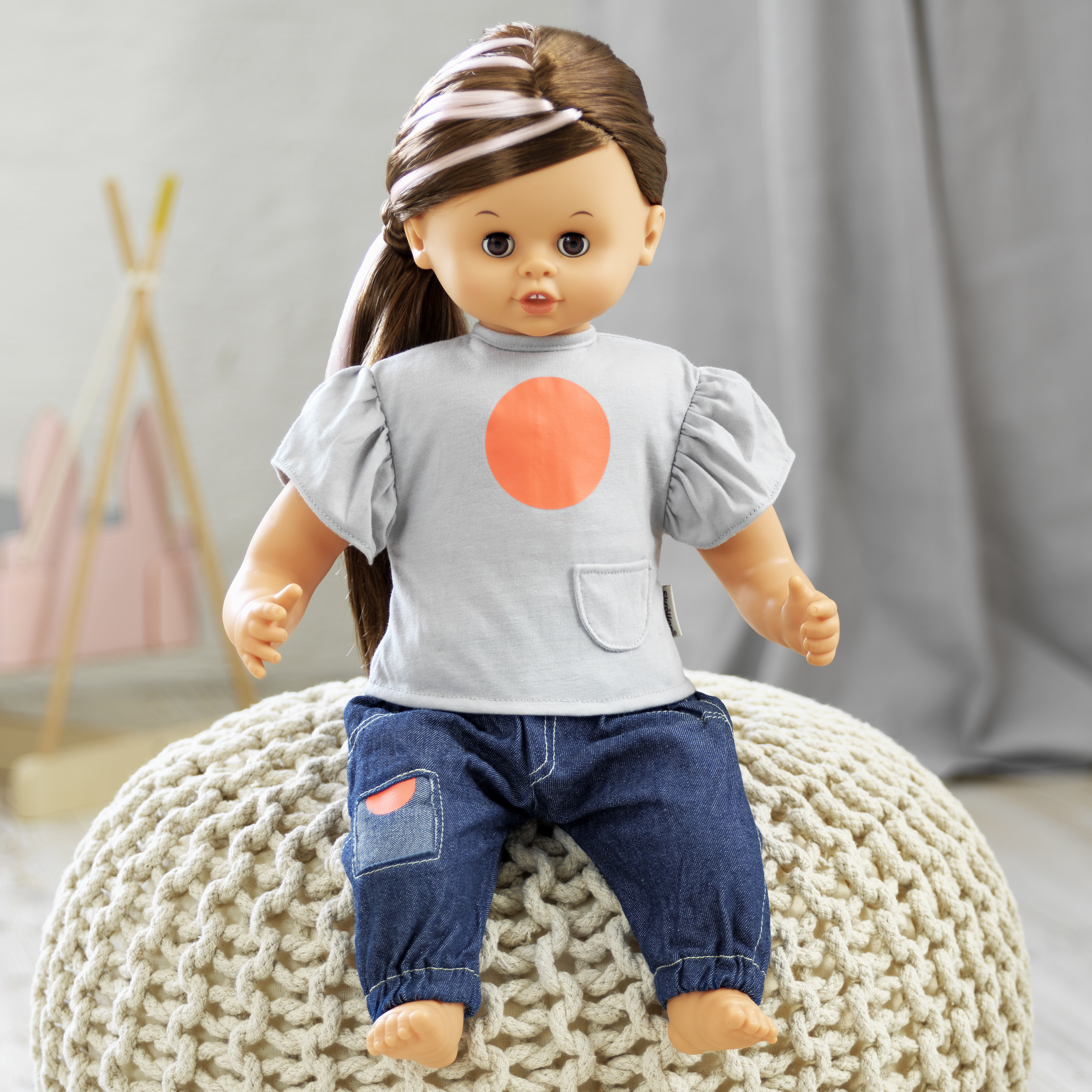 Jeansy i t-shirt dla lalki 45 cm, zabawa w przebieranie, ubranka, Skrallan