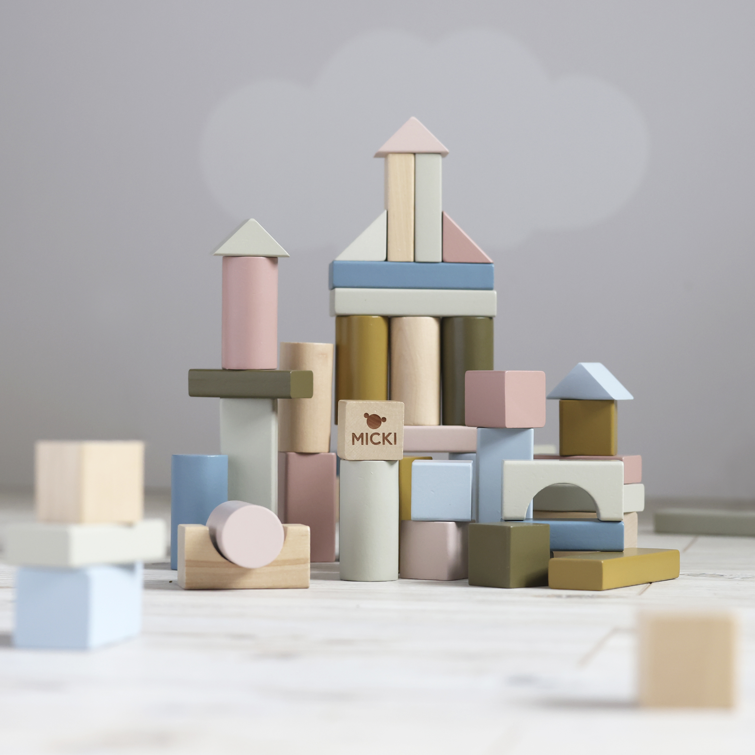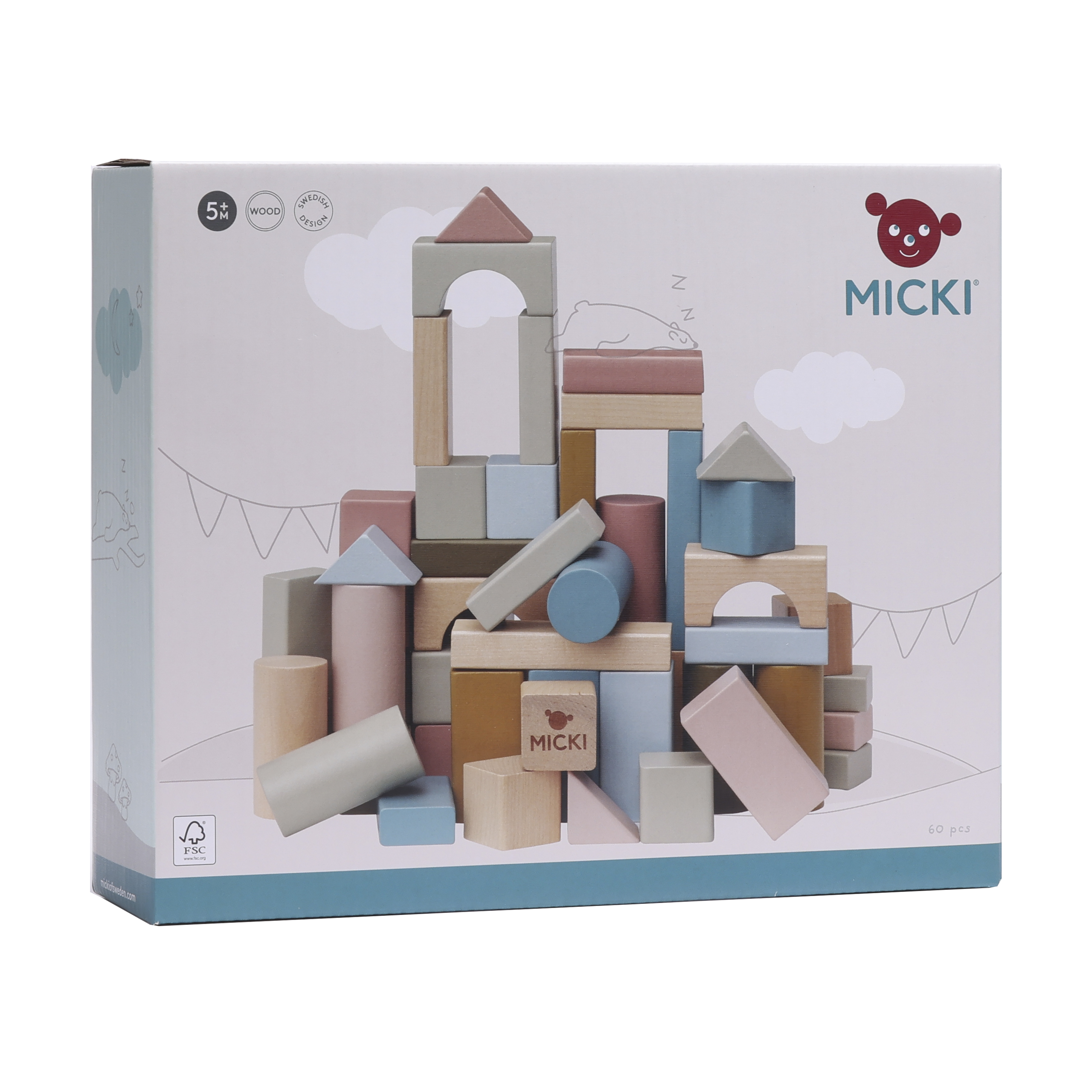 Klocki pastelowe drewniane dla dzieci 60 sztuk zestaw klocków, Micki