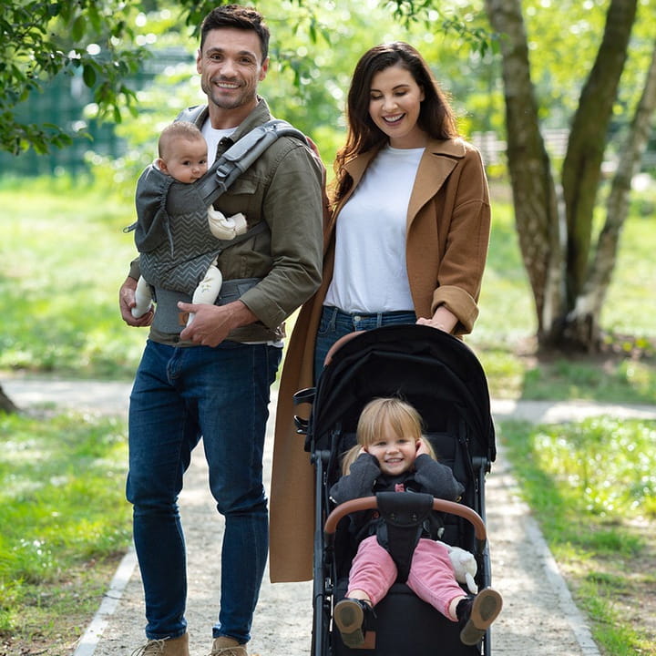Dopasowanie w każdej sytuacji. Dzięki rozbudowanej regulacji opartej na systemie bezpiecznych klamr i pasów nosidełko dostosuje się do różnych typów budowy maluszka i rodzica, gwarantując pełną wygodę.