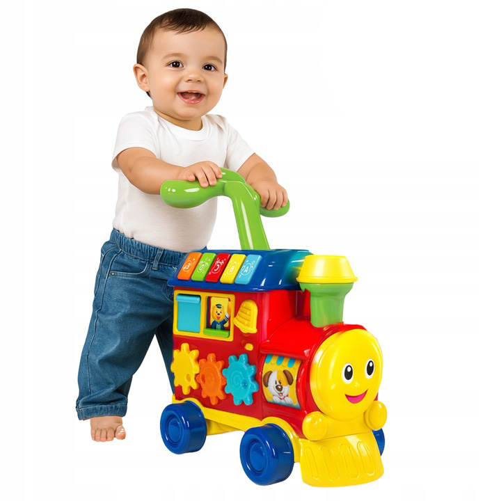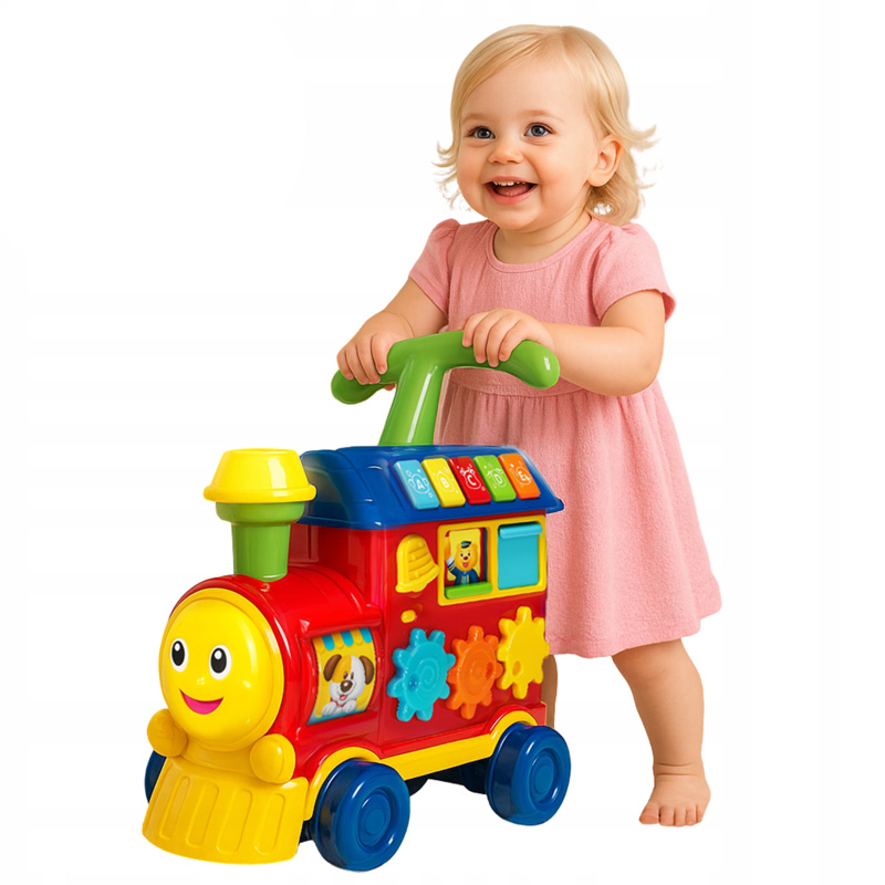 Lokomotywa Rośnij ze mną to innowacyjna, wielofunkcyjna zabawka muzyczna, stworzona z myślą o najmłodszych, wspierająca proces nauki chodzenia. Ta interaktywna zabawka będzie towarzyszyć Twojemu dziecku w kolejnych etapach rozwoju, oferując wszechstronne funkcje. Lokomotywa przechodzi przez trzy etapy, dostosowując się do potrzeb dziecka: