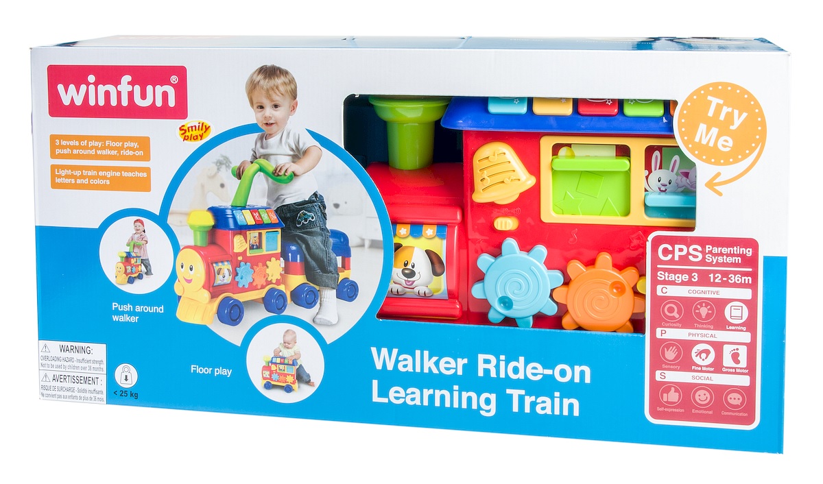 Zabawka wykonana jest z bezpiecznego plastiku, łatwego do czyszczenia. Przeznaczona dla dzieci w wieku od 12 do 36 miesięcy. Zasilana trzema bateriami AA 1,5 V, wytrzymuje obciążenie do 25 kg.