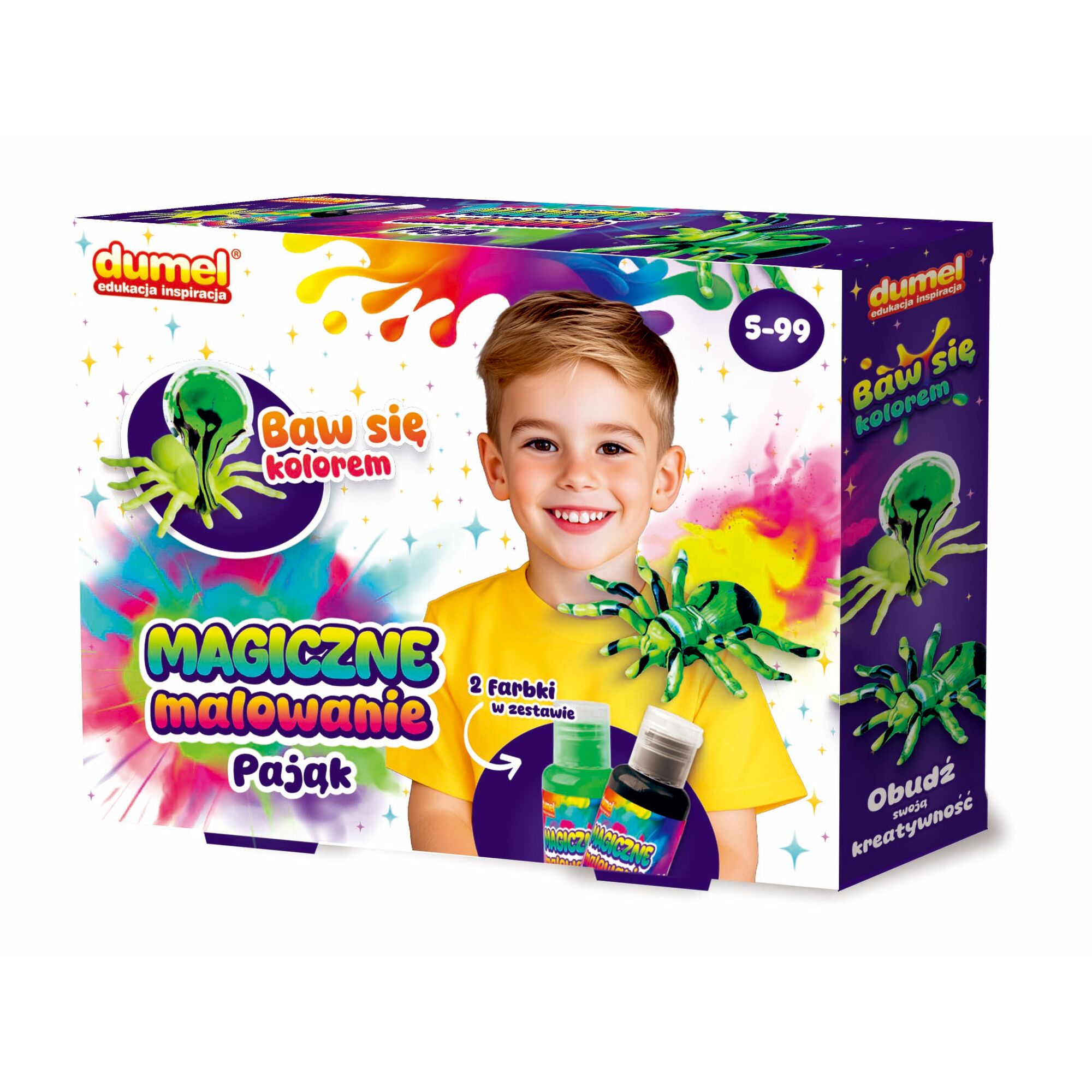 - Kompletny zestaw malarski - wszystko, czego potrzebujesz do stworzenia kolorowego pająka