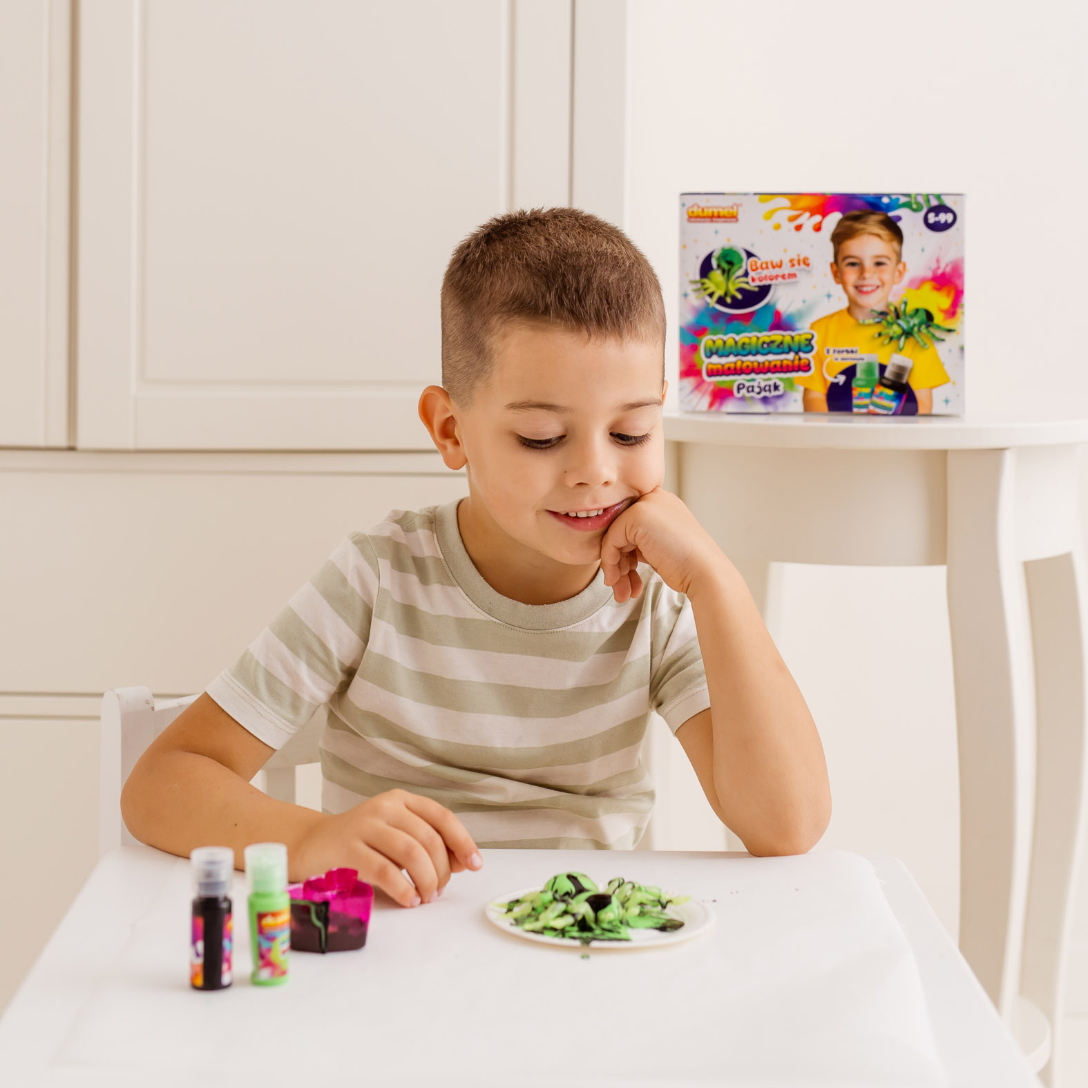 - Bezpieczeństwo i czystość: przed rozpoczęciem zabawy, pamiętaj o zabezpieczeniu ubrania i otoczenia przed farbkami