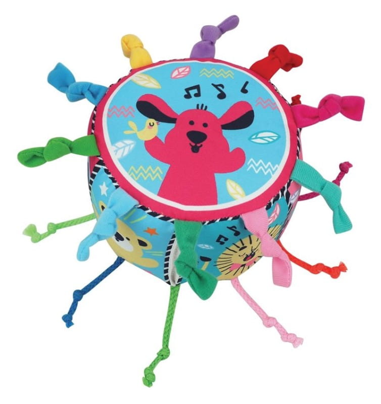Bębenek wykonany został z materiałów najwyższej jakości. Jest mięciutki i w pełni bezpieczny podczas użytkowania. Maluch będzie mógł uwolnić swój muzyczny talent i urządzić mały koncert. Jednocześnie będzie pobudzał zmysły i dbał o prawidłowy rozwój dziecka. Wyposażony został w 3 wesołe piosenki, które zachęcą do tańczenia. Tryb bębenka pozwoli rozwijać zdolności muzyczne i wystukiwać swój własny rytm. Kolorowe ilustracje przedstawiają wesołe zwierzątka. Pozwolą one dziecku przyswoić ich nazwy i wygląd.