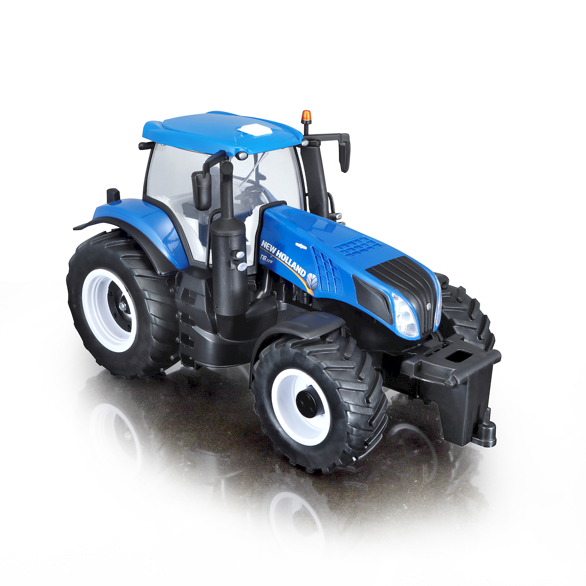 Zdalnie sterowany traktor posiada złącze, które może być wykorzystywane do zaczepiania różnych akcesoriów rolniczych innych marek, a także reflektory LED, które świecą podczas jazdy.