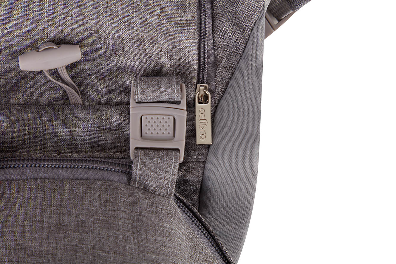 SYSTEM WENTYLACJI – Nosidełko posiada system wentylacji ukryty pod przednia kieszenią. W ciepłe letnie dni można rozpiąć suwaki i zdemontować przednią pokrywę odsłaniając siateczkę wentylacyjną.