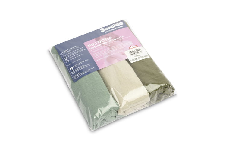 Pieluszka wykonana jest z delikatnej bawełny nie podrażniającej skóry dziecka i nie powodującej alergii. Delikatna tkanina pozwala oddychać skórze niemowlaka, dzięki czemu sprawdzi się nawet w upalne dni.