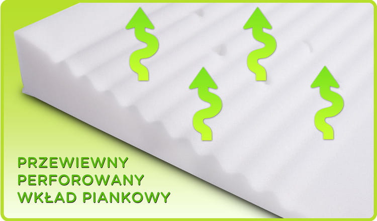 - perforowana na całej powierzchni pianka, zapobiegająca nadmiernemu poceniu