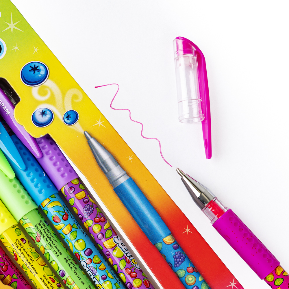 A może by tak połączyć przyjemne z pożytecznym? Żelowe długopisy w żywych, energetycznych kolorach słodko pachną, przywodząc na myśl popularne owoce! Każdy z kolorów pachnie inaczej, a zapachy przypisane do poszczególnych długopisów odpowiadają owocom w tym samym kolorze.