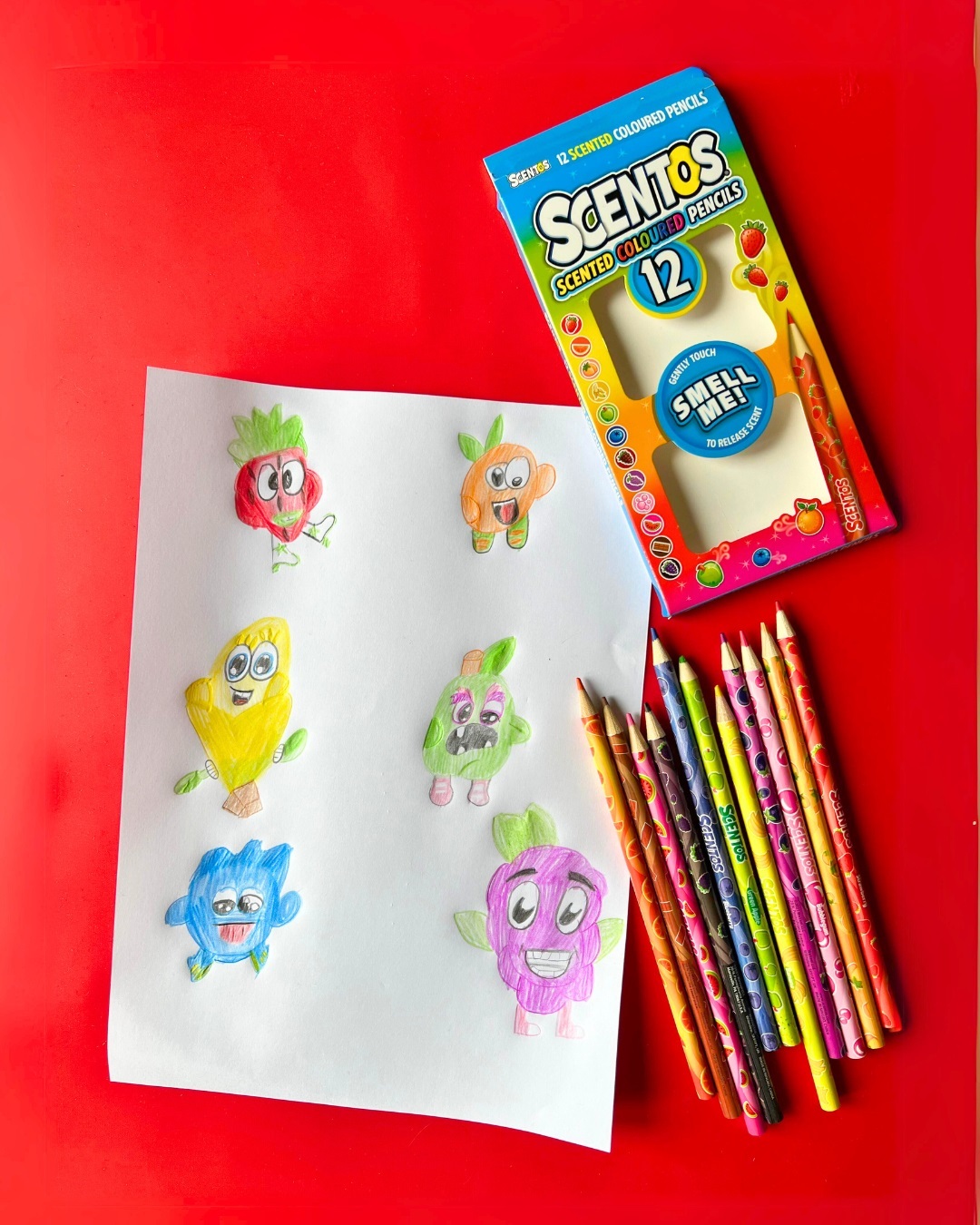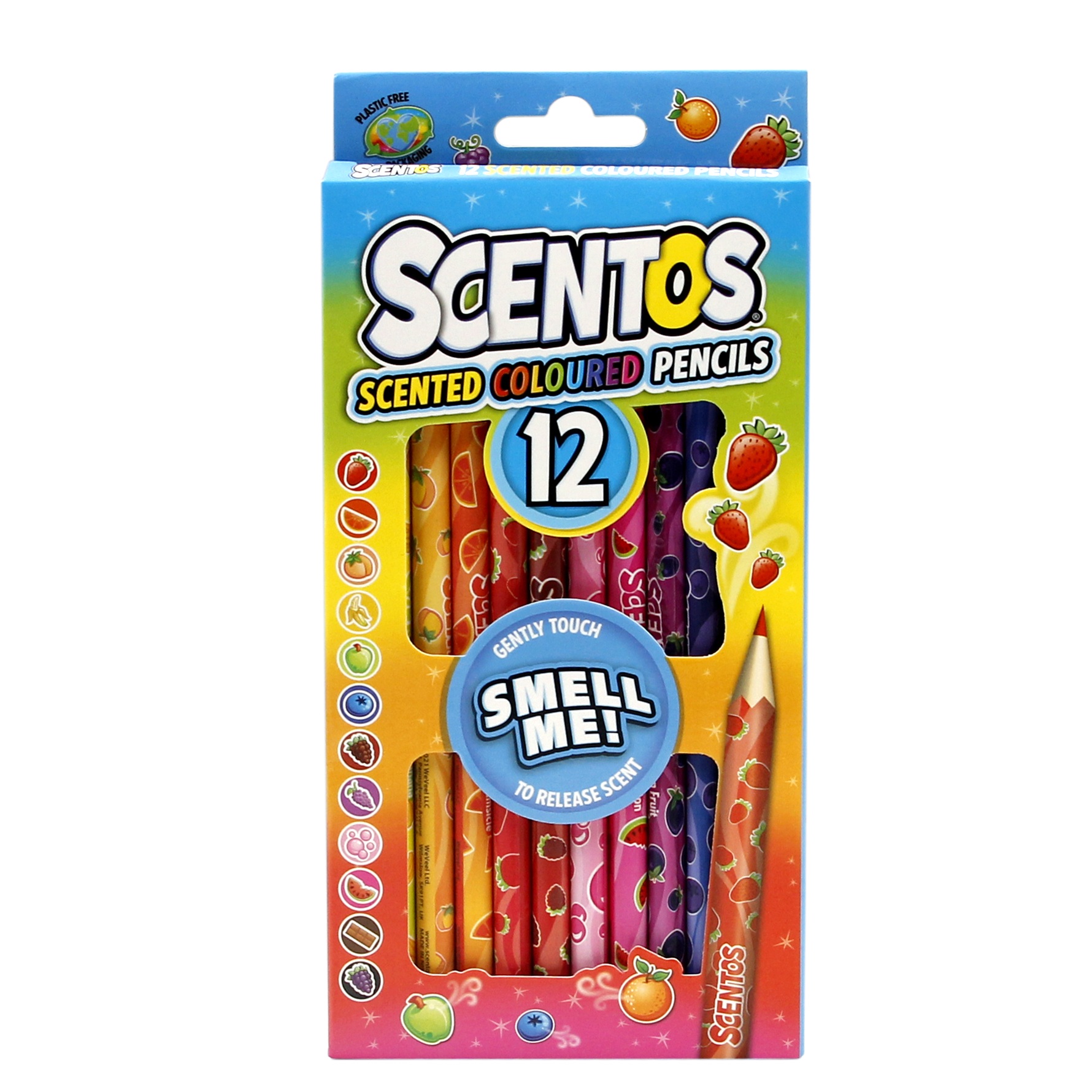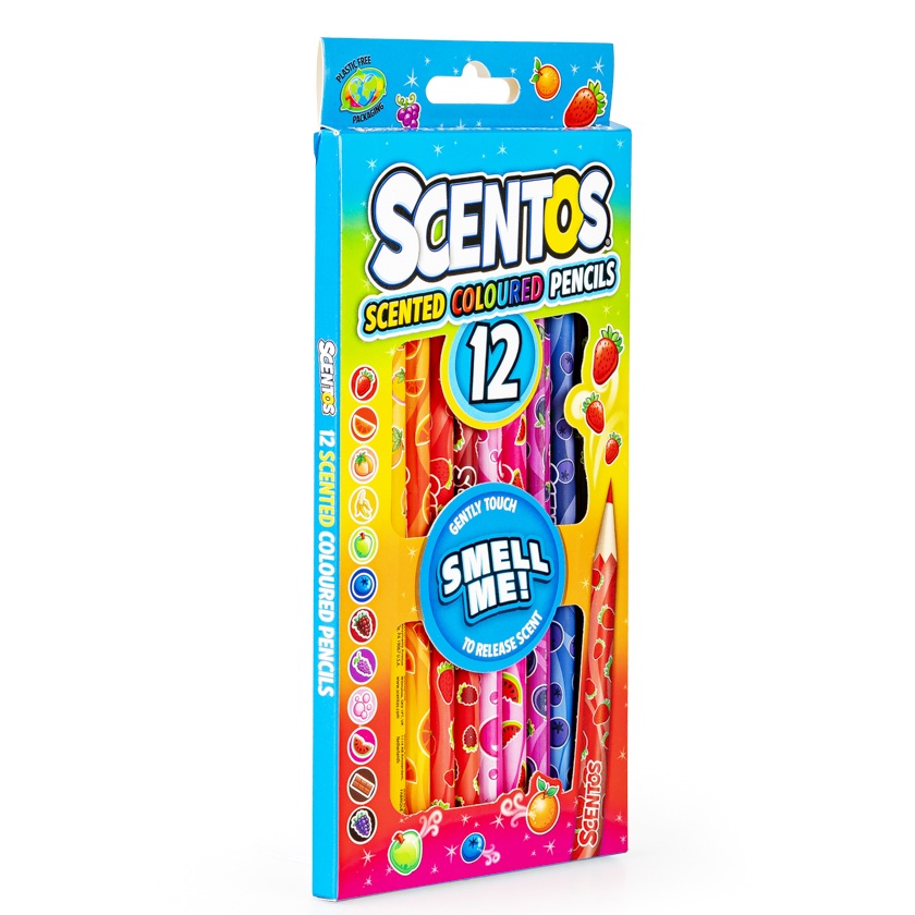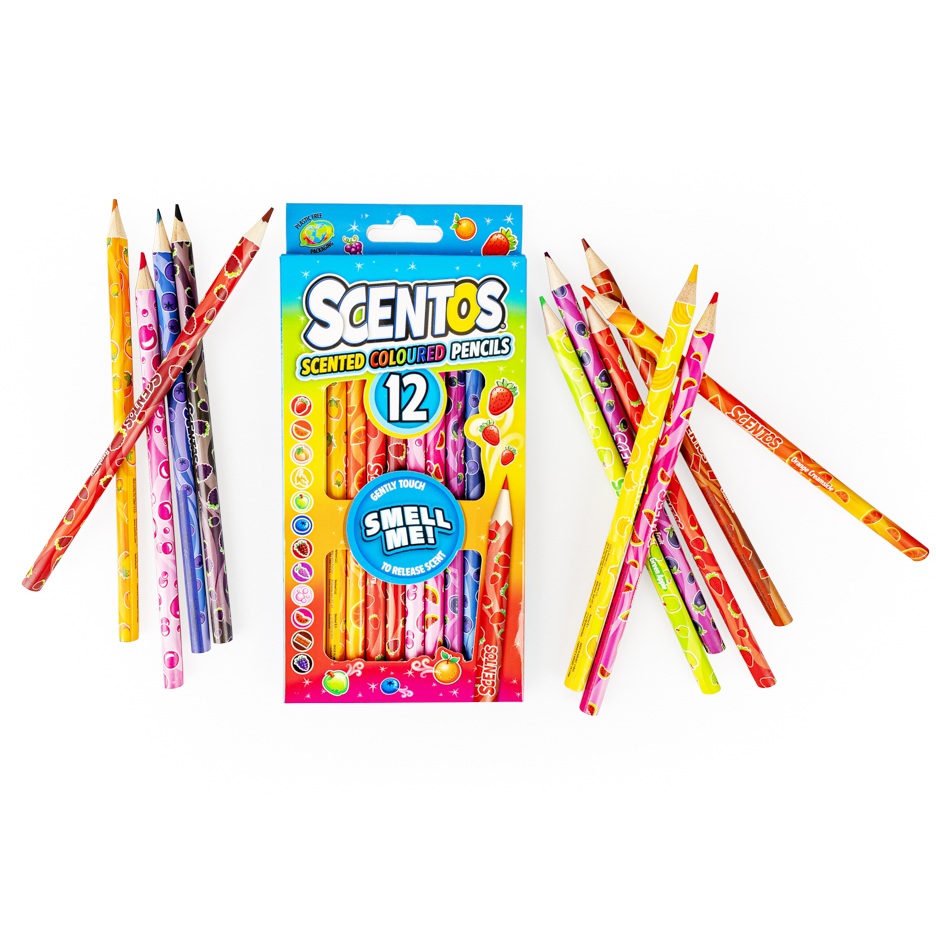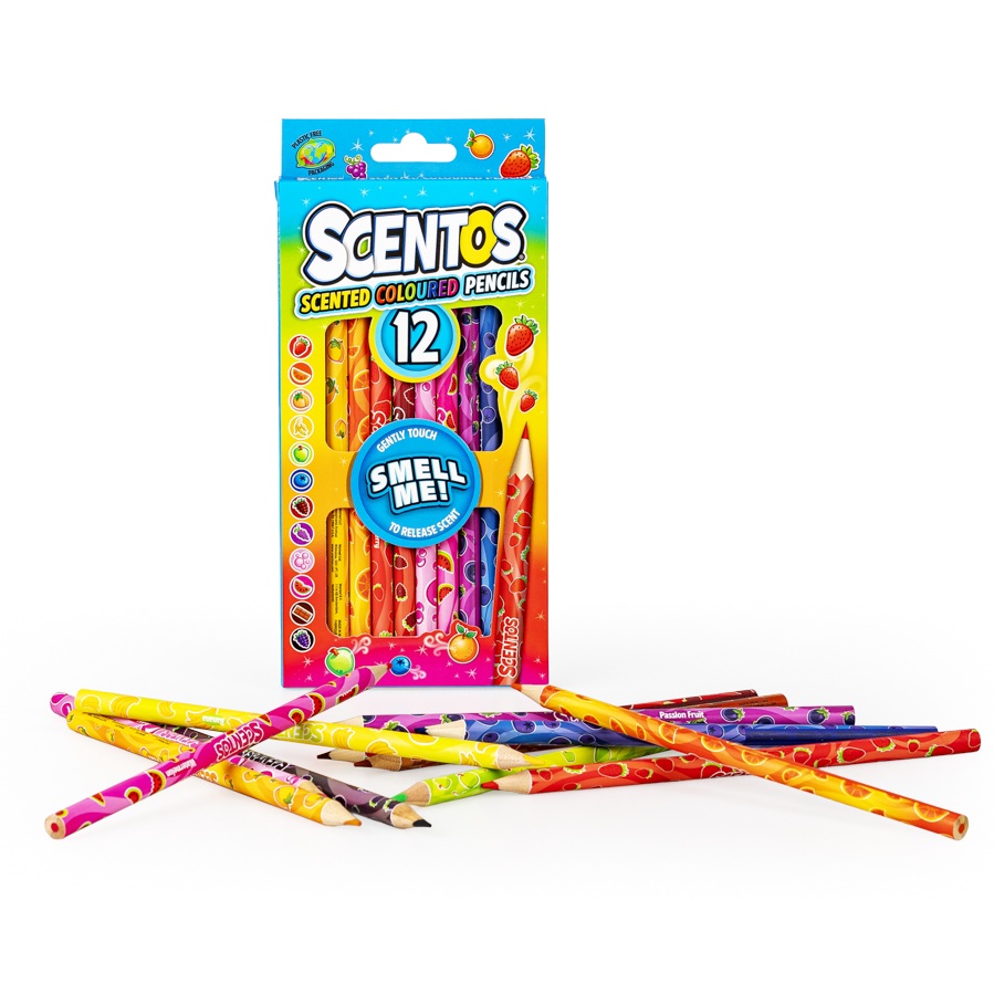 Owocowa eksplozja zapachu! Zestaw kryje w sobie dwanaście ołówkowych kredek, a każda z nich ma inny kolor. Poszczególnym kredkom odpowiada inny, słodki zapach, przywołujący na myśl owoce lub słodycze. O inspiracji zapachowej informuje nadruk na każdej z kredek.