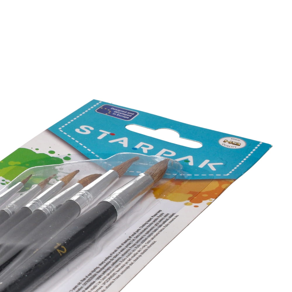 Kompletny zestaw 6 zróżnicowanych pędzli wysokiej jakości z kolekcji Starpak dedykowanej szkole. W zestawie znajdują się pędzle o końcówkach w szpic w różnych rozmiarach. Umożliwiają one uzyskanie różnorodnych efektów malarskich. Idealnie sprawdzą się do malowania cienkich i precyzyjnych kresek. Pędzle będą inspiracją dla młodych, ambitnych twórców. Zapoznaj się również z innymi produktami Starpak Przeznaczony dla dzieci w wieku: 3 . Wymiary opakowania wys.x szer.x gł. cm : 28,5x8x1. Waga produktu w opakowaniu kg : 0,04 kg.