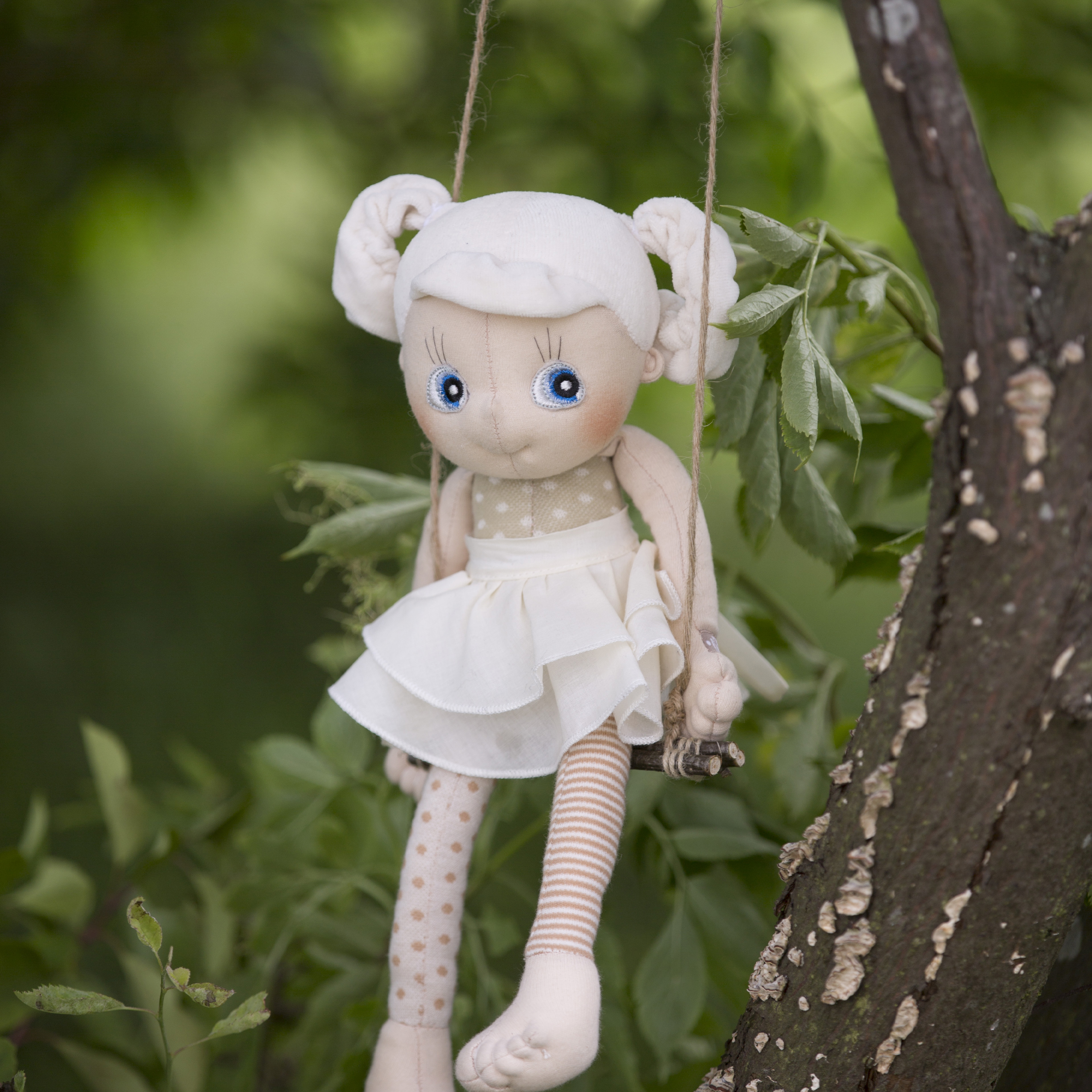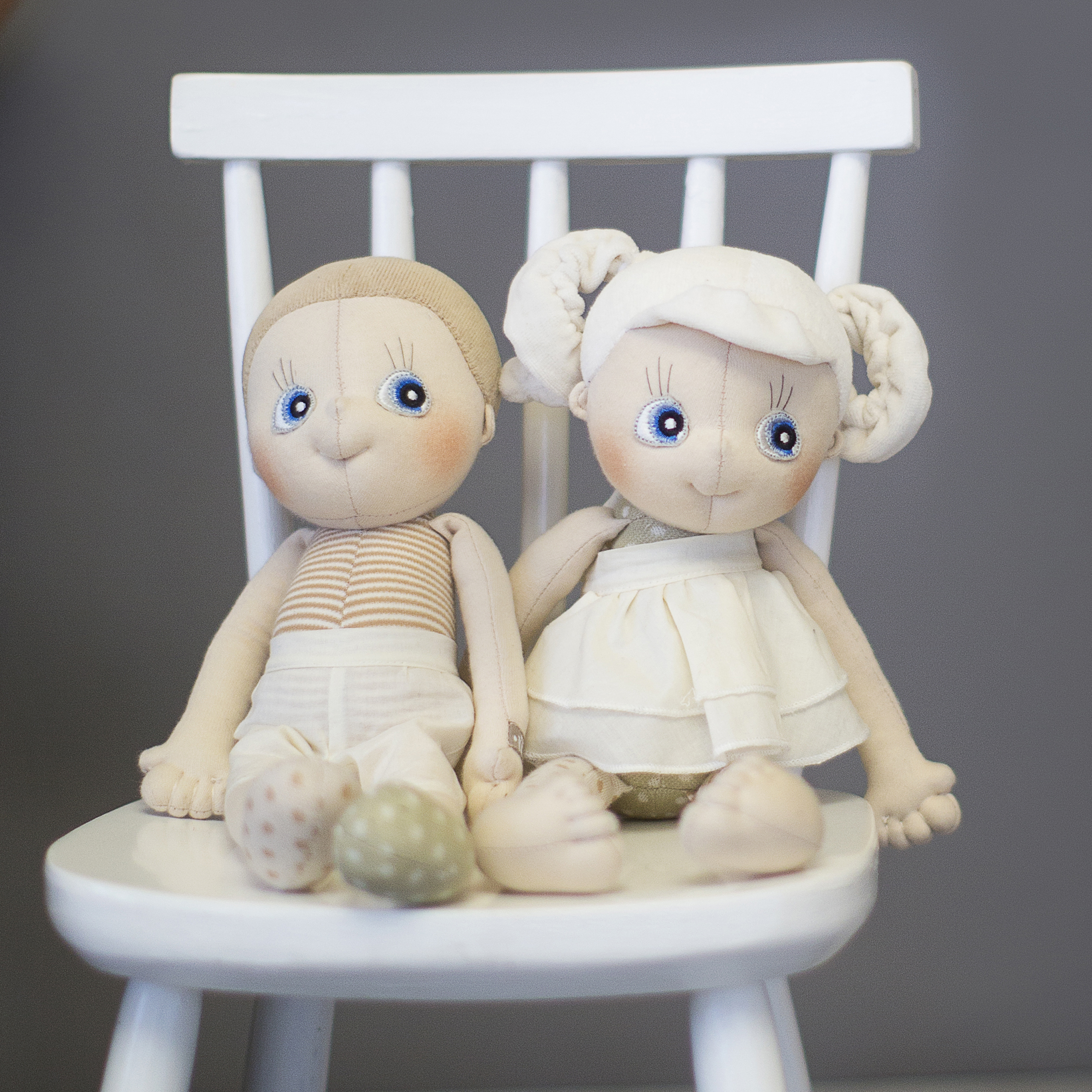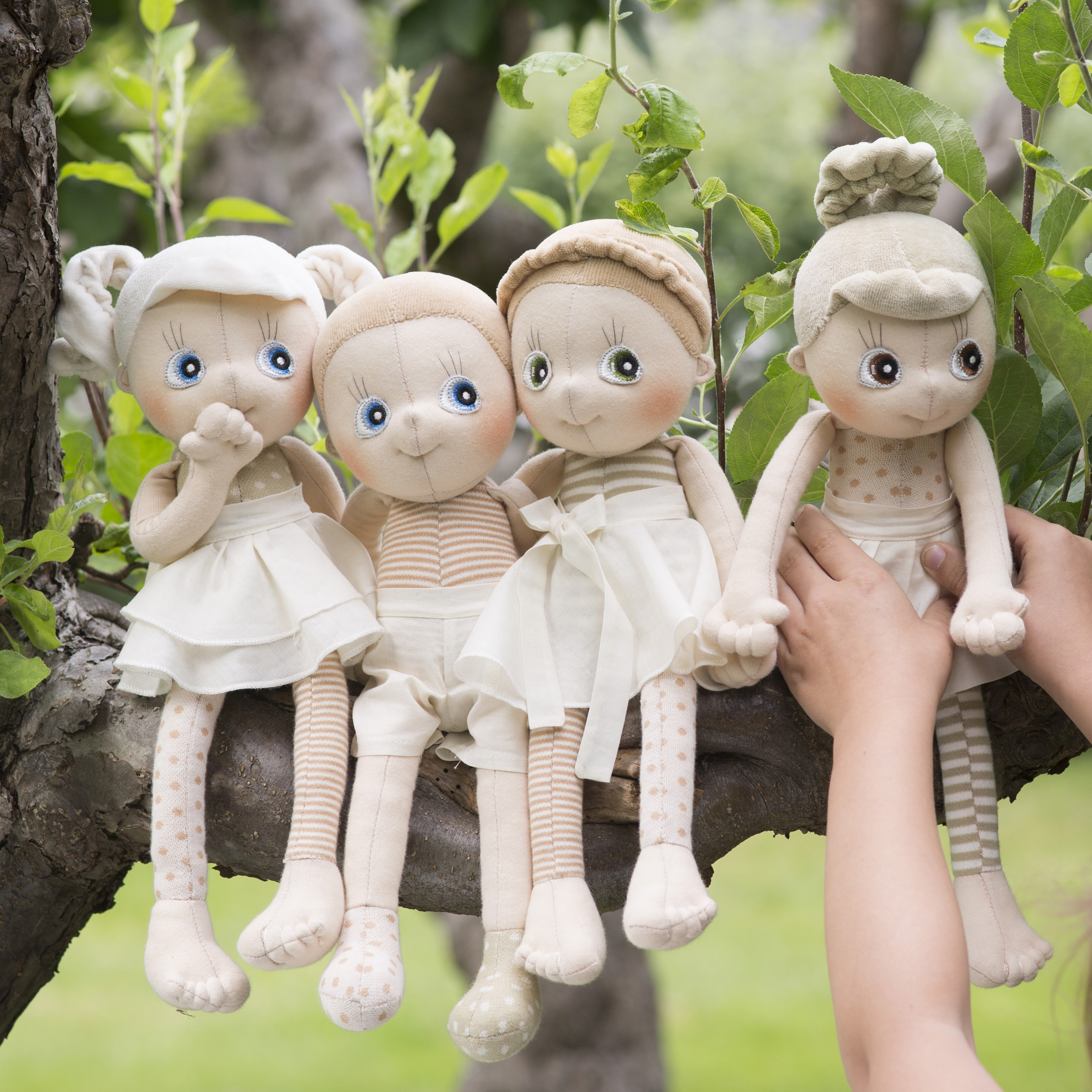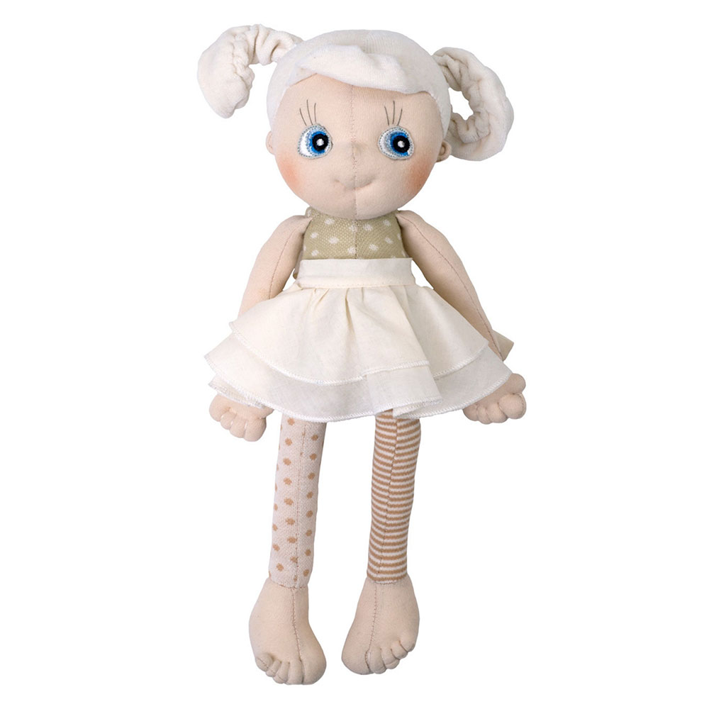 Przepiękne miękkie lalki w neutralnych kolorach są najlepszymi pierwszymi przytulankami dzieci od dnia narodzin i towarzyszą im przez kolejne etapy rozwoju. Wykonane z organicznej bawełny występują w dwóch rozmiarach, mają długie nóżki i długie rączki idealne do chwytania przez dziecko i chodzenia na spacer „za rękę”. Lalki w mniejszym rozmiarze posiadają sznureczki, dzięki którym można je przywiązać np. do wózka.