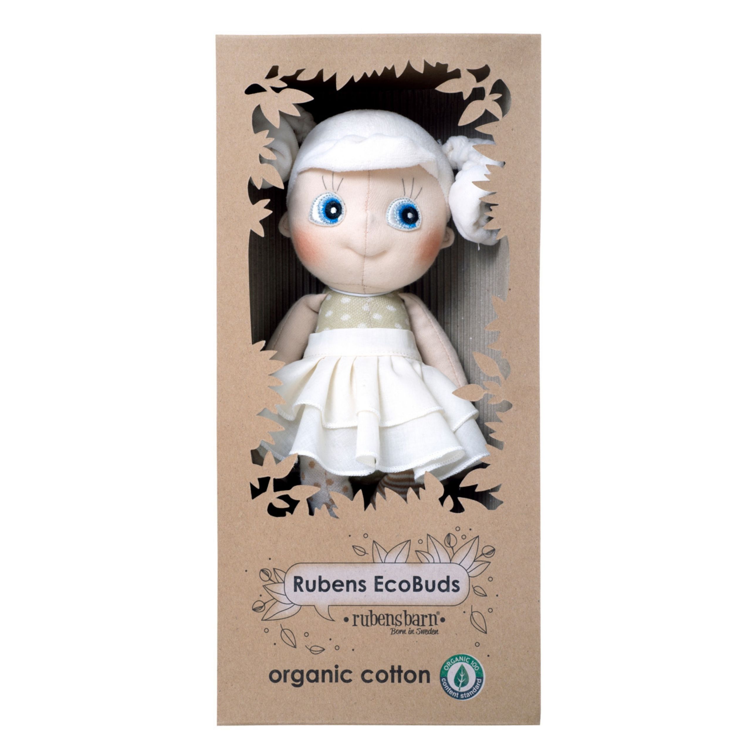 Lalki Baby są wykonane ze 100% organicznej bawełny certyfikowanej przez Organic Content Standard (OCS) oraz wypełnione 100% specjalnym włóknem pochodzącym z recyklingu zgodnie z Global Recycled Standard (GRS).