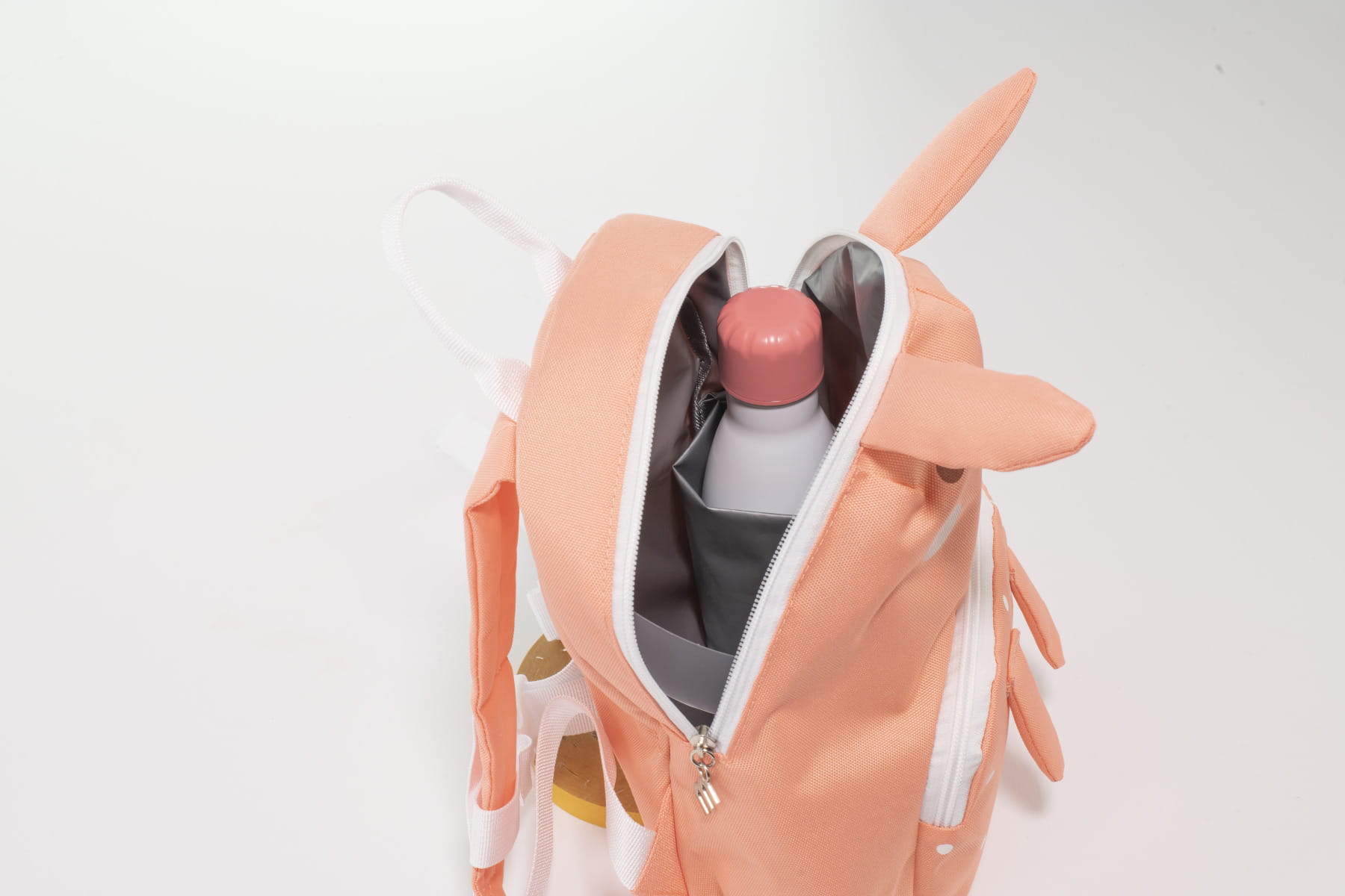Do plecaka dołączona jest etykieta, którą można spersonalizować imieniem dziecka, aby samo rozpoznało je w przedszkolu lub nie zgubiło w parku. Wykonane z bardzo wytrzymałych materiałów, które chronią butelki i pojemniki, a także zachowują higienę akcesoriów.