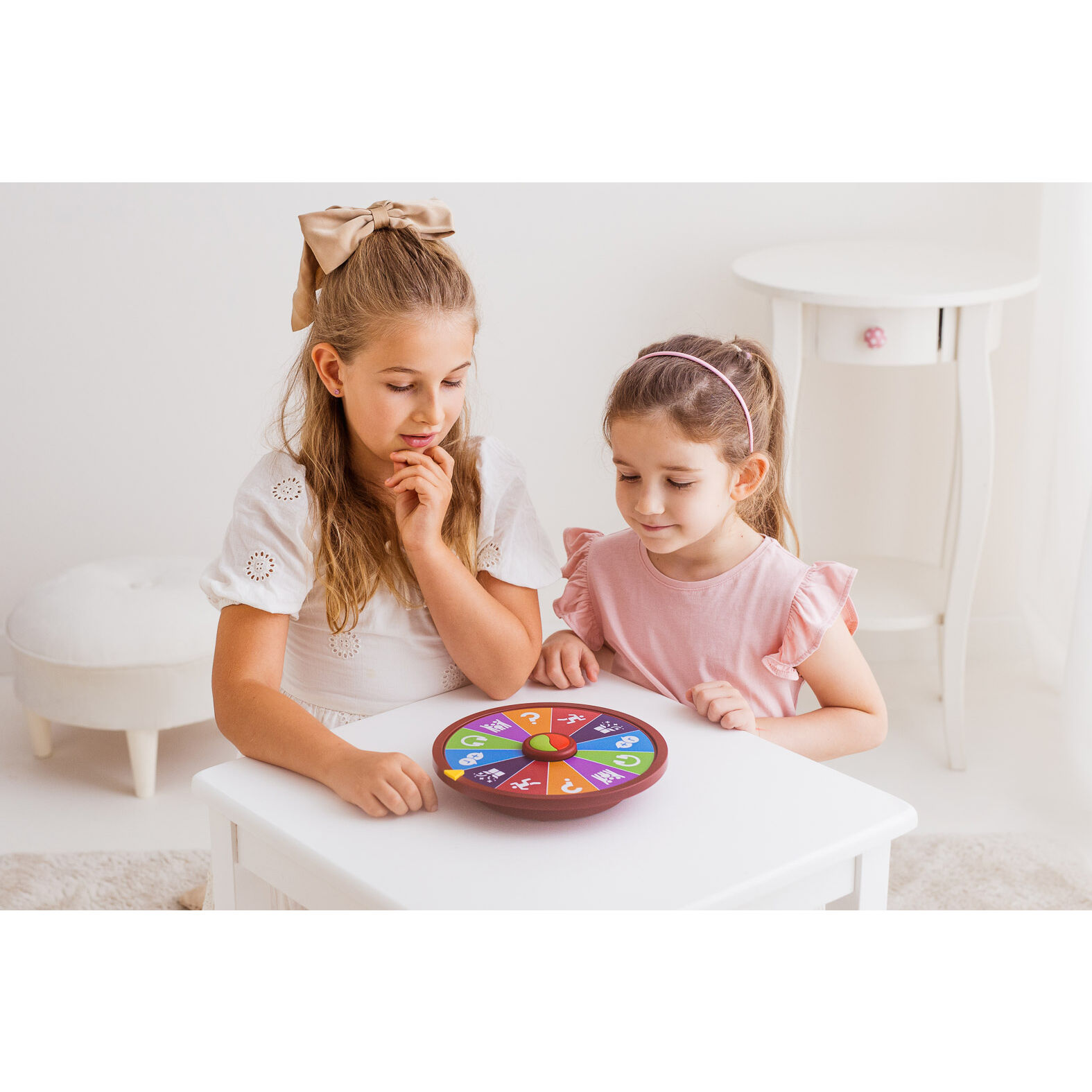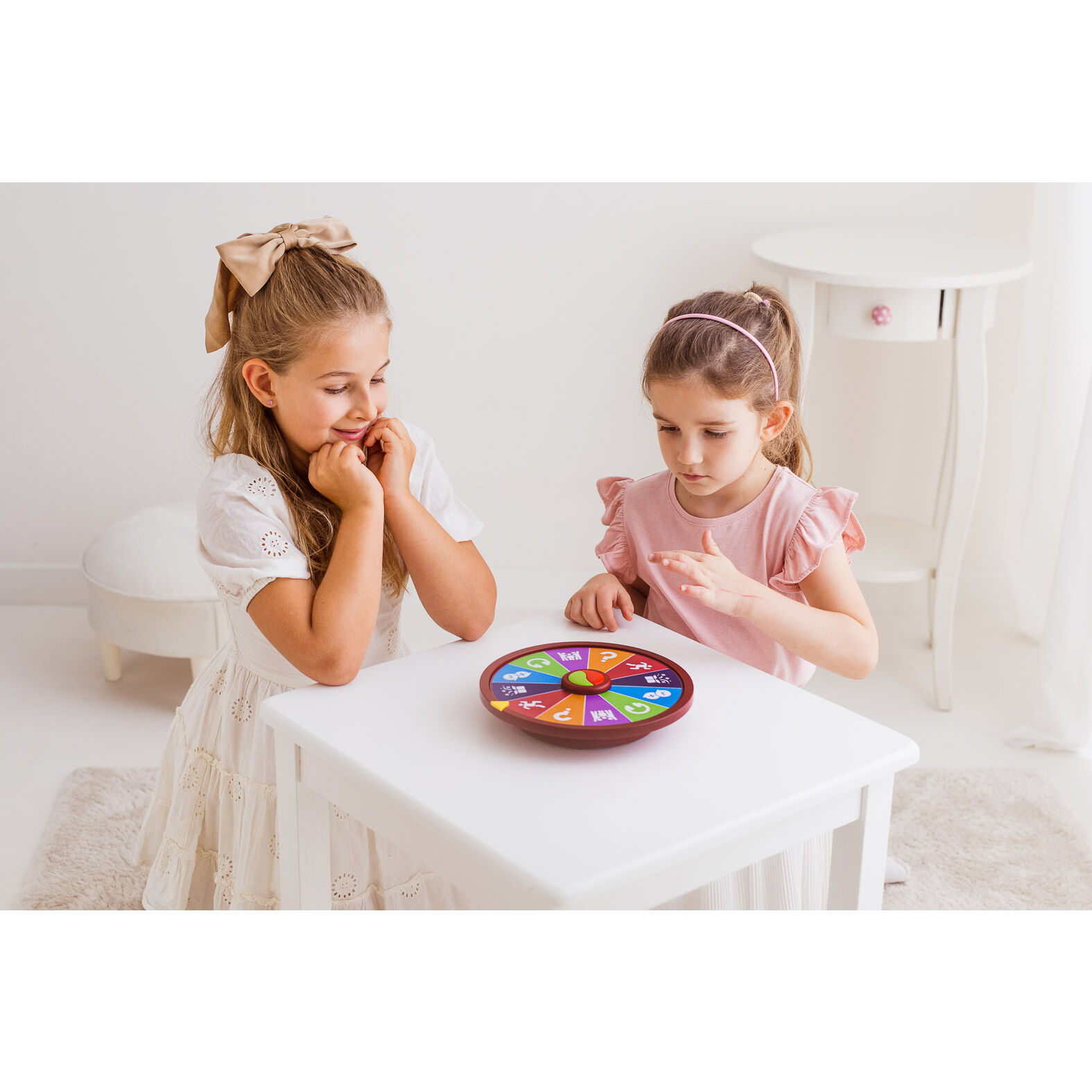 Zakręcone koło pełne szalonych zadań! Zmierz się z przeciwnikiem w emocjonującej rywalizacji, losując kategorie i wykonując przydzielone ci wyzwania. Koło zadań poprowadzi uczestników przez grę, objaśniając zasady, podając wyzwania, a także prawidłowe odpowiedzi, w kategoriach, które tego wymagają, pozwalając w ten sposób zweryfikować czy odpowiedź udzielona przez gracza była prawidłowa. Gra liczy punkty, ten kto zgromadzi ich najwięcej, wygrywa!