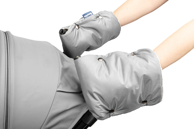Rękawiczka/mufka do wózka poprawia komfort spaceru w niekorzystnych warunkach atmosferycznych. Chroni dłonie i ułatwia opiekę nad maleństwem. Rękawiczki/mufki nie są ze sobą połączone, dzięki temu można je stosować również wózkach z rozdzieloną rączką. Jest zapinama napami, na rączkach wózka lub sanek, i dlatego utrzymuje dobrze swoje położenie. Z zewnątrz pokryta jest nieprzemakalnym materiałem, natomiast warstwę wewnętrzną stanowi miękki i cieplutki minky. Pomiędzy nimi znajduje się warstwa owaty, która zwiększa ochronę przed zimnem.W komplecie znajdują się 2 szt rękawiczki/mufki w rozmiarze 22x48cm (rozpięte).