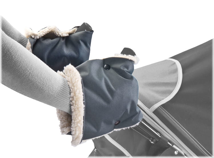 Jesienno-zimowy spacer z wózkiem wiąże się z narażeniem dłoni na działanie wiatru, deszczu i śniegu. Rękawiczka/mufka do wózka jest receptą na te niedogodności. Chroni dłonie przed niekorzystnymi czynnikami atmosferycznymi i ułatwia opiekę nad maleństwem – nie trzeba już na przemian zakładać i zdejmować rękawiczek. Mufkę zapinamy napami, na rączkach wózka lub sanek, dzięki czemu utrzymuje dobrze swoje położenie. Z zewnątrz pokryta jest nieprzemakalnym materiałem, natomiast warstwę wewnętrzną stanowi miękki i cieplutki „baranek”.
