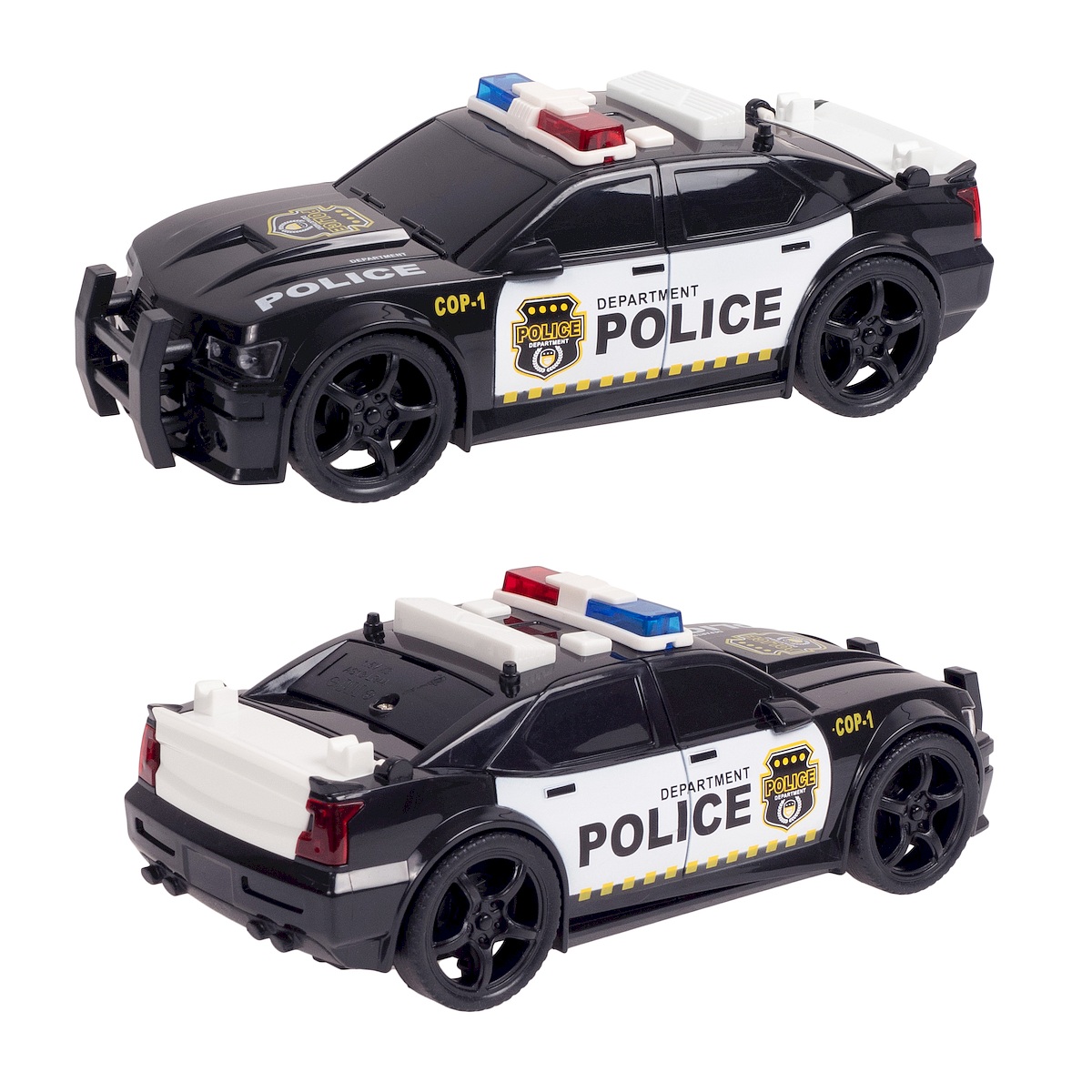 • Realistyczny design – wzorowany na prawdziwych radiowozach policyjnych, co pobudza wyobraźnię dzieci.
