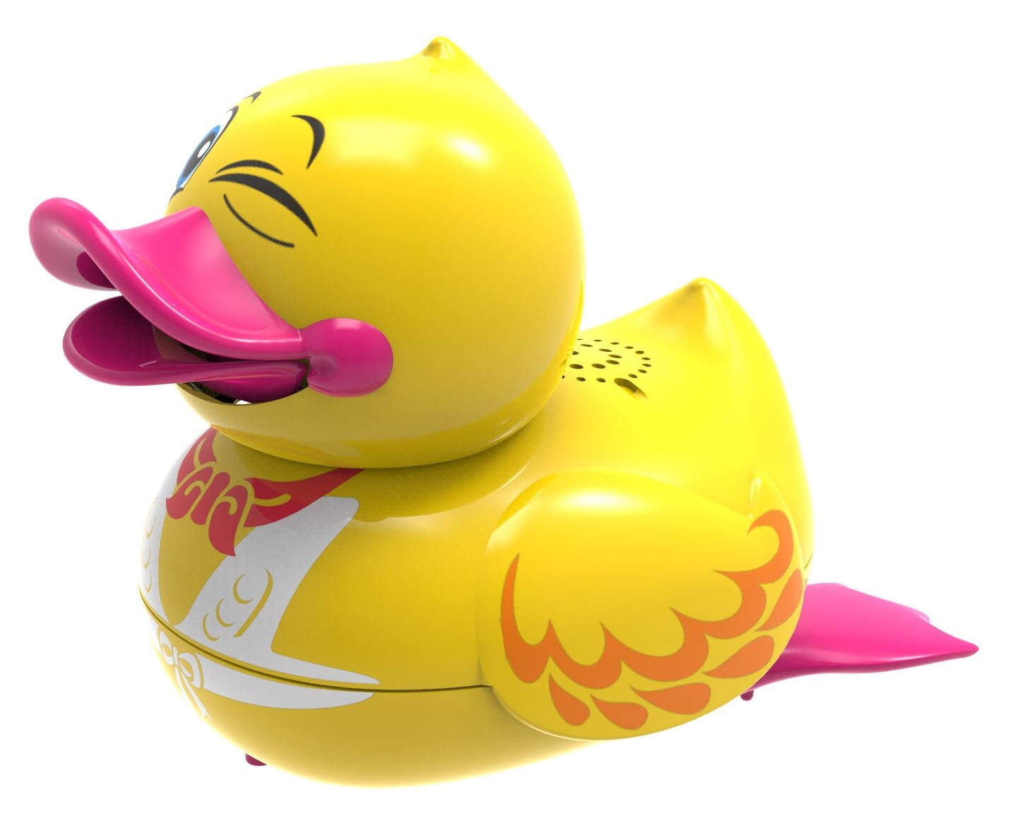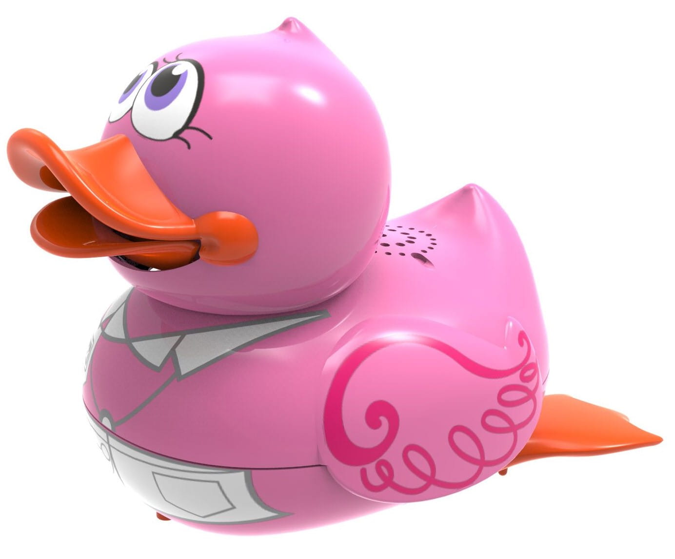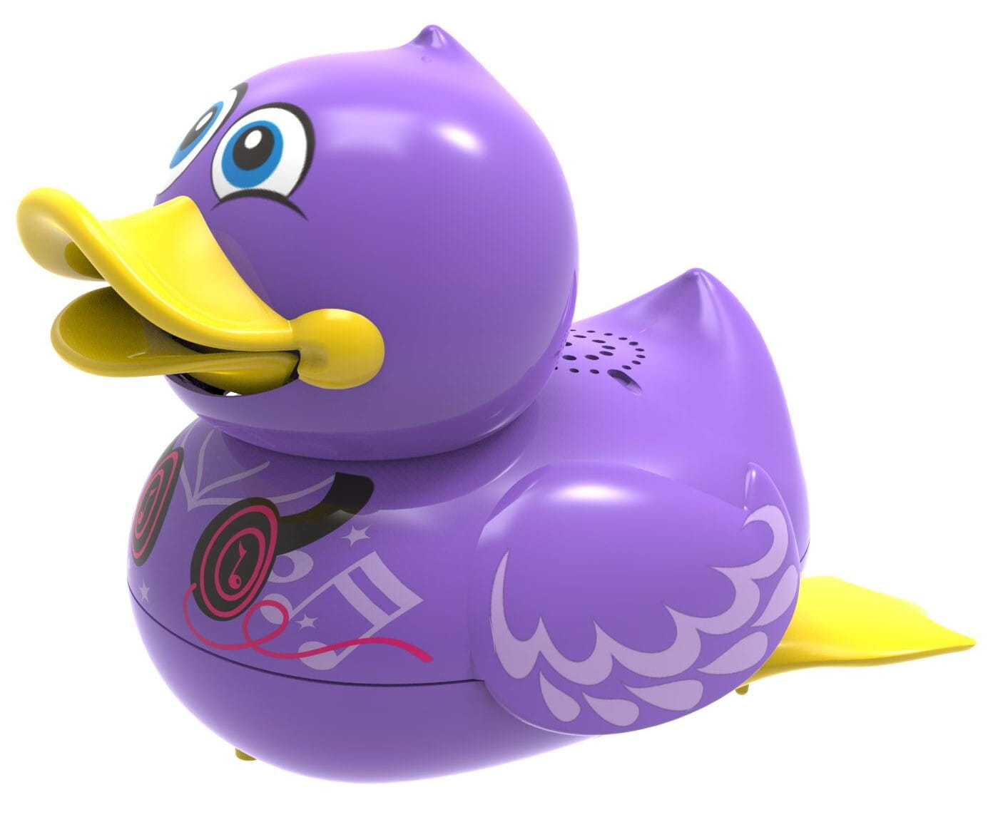 Kwa kwa! Na horyzoncie zabawne kaczuchy w wesołych kolorach! Każda z nich różni się wyglądem i charakterem. Te urocze ptaszki potrafią wspaniale pływać. Nie wierzysz? Połóż je na wodzie, a sam się przekonasz! Naciśnij guziczek na brzuszku kaczuszki, aby zaśpiewała w swoim kaczym języku! Ptaszki potrafią ruszać dzióbkami, a gdy tylko zbiorą się razem, śpiewają chórem. Kaczuszki sprzedawane są pojedynczo, zbierz całą kolekcję, aby mogły się razem bawić! Zabawka przeznaczona jest dla dzieci powyżej 3 roku życia.