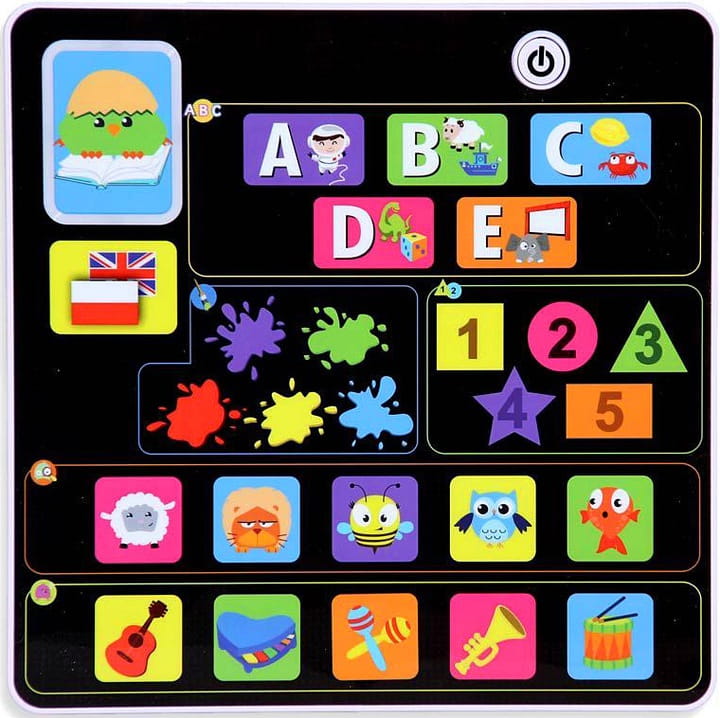 Interaktywny tablet Smily Play, przypominający wyglądem nowoczesny, mały komputer przenośny, jest zabawką edukacyjną dedykowaną dla dzieci powyżej 18 miesiąca życia. Posiada dotykowy ekran, dzięki czemu zabawkę obsługuję się jak prawdziwe urządzenie elektroniczne. Na tablecie znajdują się kolorowe przyciski funkcyjne.