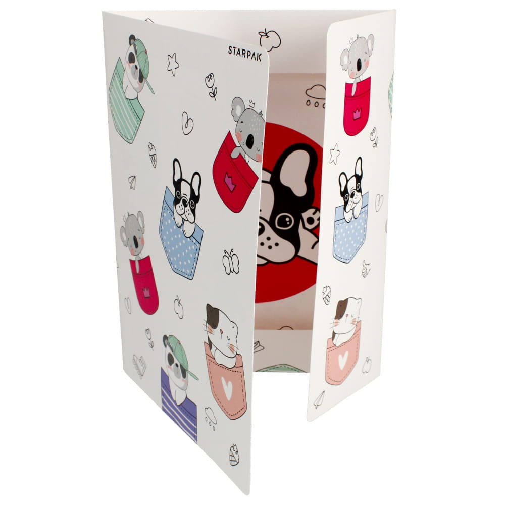 Zalety produktu: Teczka do przechowywania dokumentów, dyplomów i prac artystycznych. Otworki na gumkę zabezpieczone nitami. Gumka w oplocie wykonana z estetycznej tkaniny, w środku posiada plan lekcji, tabliczkę mnożenia lub informację o czasownikach nieregularnych. Teczka jest laminowana, dzięki temu bardziej trwała i ozdobiona kolorową grafiką. Początek roku szkolnego oznacza konieczność skompletowania wyprawki szkolnej. Czasami to prawdziwe wyzwanie. Na szczęście STARPAK ma wszystko co jest potrzebne młodemu człowiekowi w szkole. Teczka z gumką Zapoznaj się również z innymi produktami STARPAK z serii Minisy. Wymiary/waga: wymiary produktu: A4, waga produktu kg : 0,06 kg. Produkt przeznaczony dla dzieci w wieku: 3 .