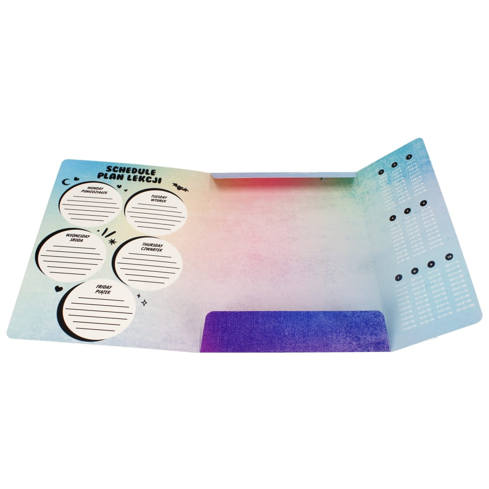 Zalety produktu: Teczka do przechowywania dokumentów, dyplomów i prac artystycznych. Gumka w oplocie wykonana z estetycznej tkaniny, teczka w środku posiada plan lekcji, tabliczkę mnożenia lub informację o czasownikach nieregularnych. Teczka jest laminowana, dzięki temu bardziej trwała i ozdobiona kolorową grafiką z lMonster High. Początek roku szkolnego oznacza konieczność skompletowania wyprawki szkolnej. Czasami to prawdziwe wyzwanie. Na szczęście STARPAK ma wszystko co jest potrzebne młodemu człowiekowi w szkole. Teczka z gumką Zapoznaj się również z innymi produktami STARPAK z kolekcji Monster High. Wymiary/waga: wymiary produktu: A4, waga produktu kg : 0,06 kg. Produkt przeznaczony dla dzieci w wieku: 3 .