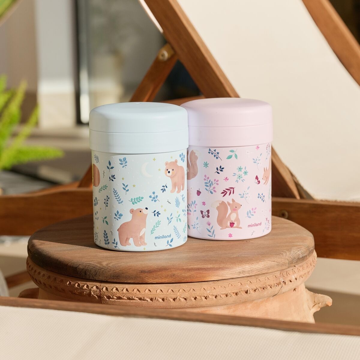 Termos - Niedźwiadki marki Miniland jest zaprojektowany do utrzymywania ciepła posiłków stałych i jedzenia dla dzieci, oferując praktyczne rozwiązanie do transportu wielu porcji w jednym pojemniku. Dzięki łącznej pojemności 700 ml jest idealny do organizacji posiłków dla niemowląt i małych dzieci zarówno w domu, jak i w podróży.