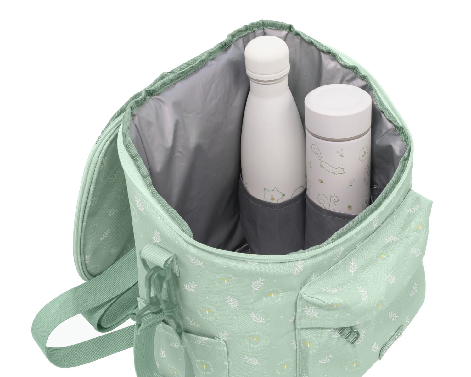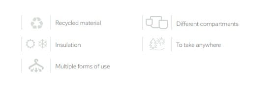 Zaprojektowany do zabrania wszędzie, ma dwie kieszenie o różnych rozmiarach. Główna kieszeń jest pokryta izolacją, która pomaga utrzymać temperaturę pokarmu, a także ma specjalną małą kieszonkę do przechowywania butelki dla niemowląt i zapobiegania jej przewracaniu się lub przesuwaniu w środku. Druga kieszeń, która jest mniejsza, idealnie nadaje się do przechowywania innych, mniejszych akcesoriów, dzięki czemu wszystko mieści się w jednym plecaku. Dodatkowo posiada dwie boczne kieszenie na butelki i termosy.